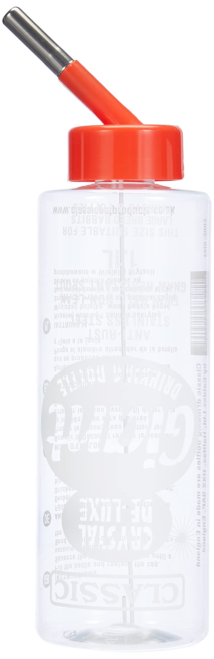 Product DescriptionThe bottle of classic kerbl is particularly suitable for rabbits with great thirst. The rabbit can always use when needed, the water stays clean forever. Nevertheless, the water should be regular, or are being updated daily.DirectionsFill product to line, securely screw on the cap assembly, invert the product to form a vaccum (this is essential), hang the bottle from the cage bars where your pet can easily reach it.Box ContainsCLASSIC PLAST BOTTLE GIANT 1LTR