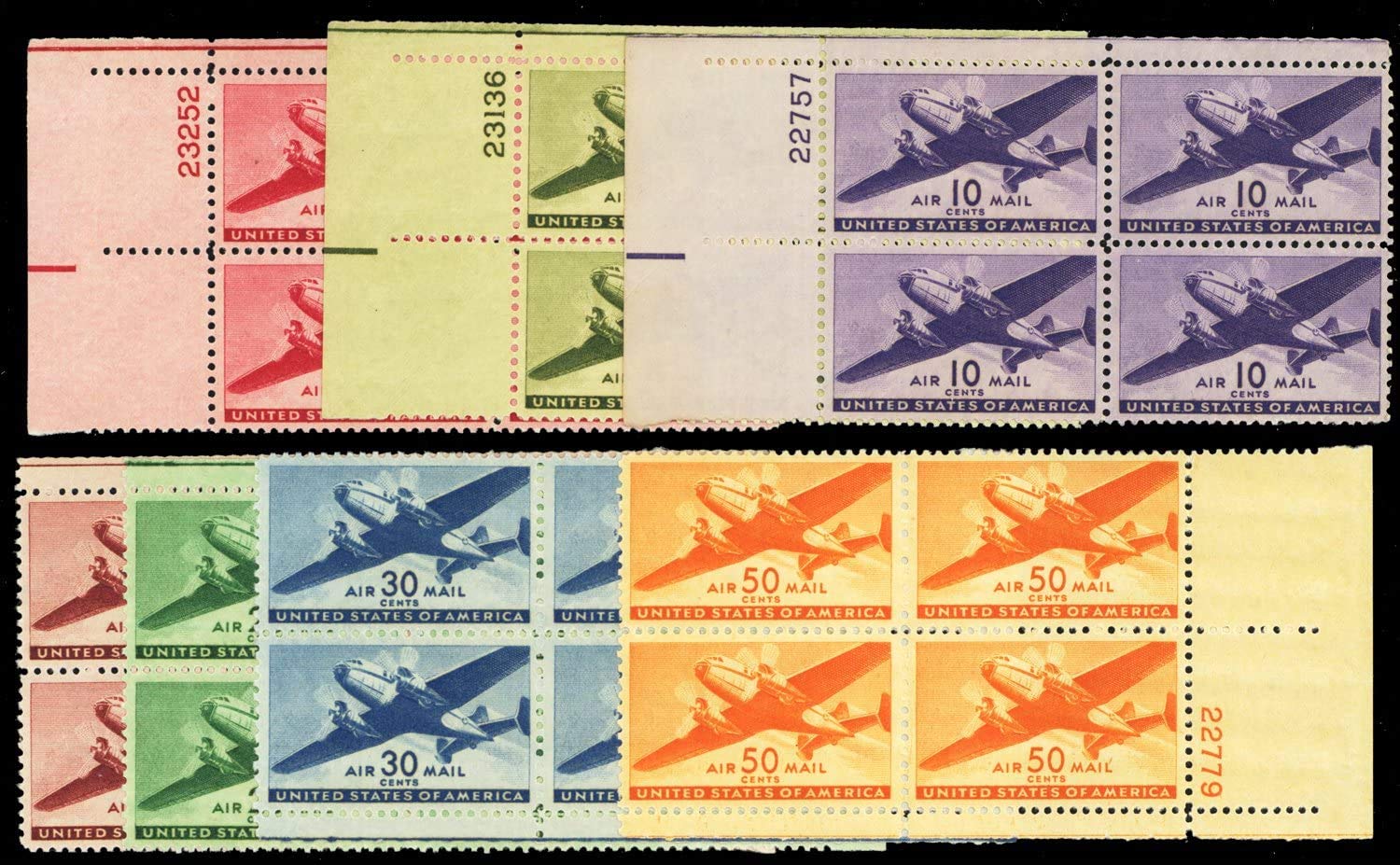 Classic US Transport Airmail Stamps Complete Set of Plate Number Blocks Mint Never Hinged Scott C25-C31