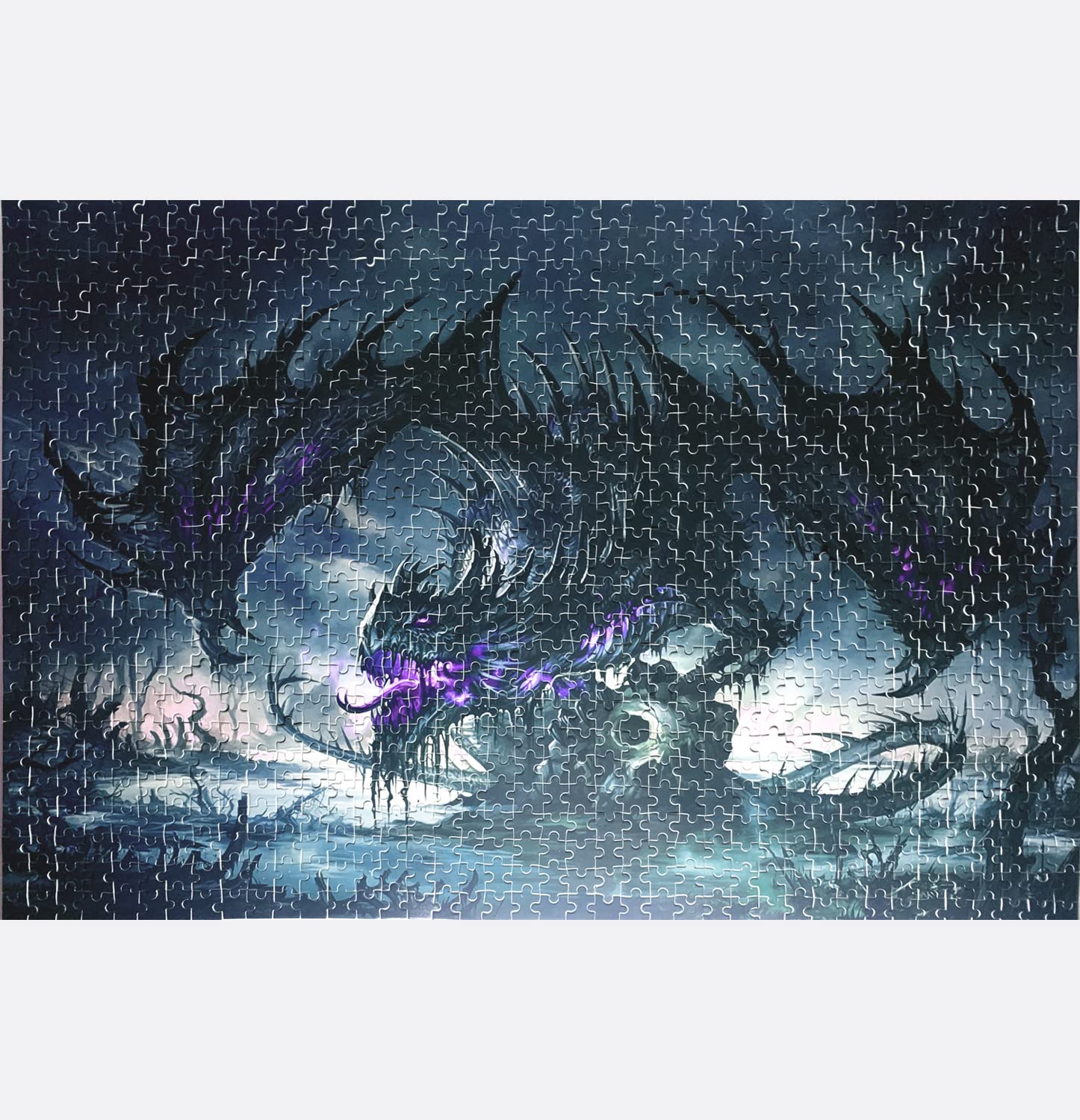 Classic Wooden Puzzle 1000 Pieces Huge Black Dragon On The Skull Picture Photo Home Decor