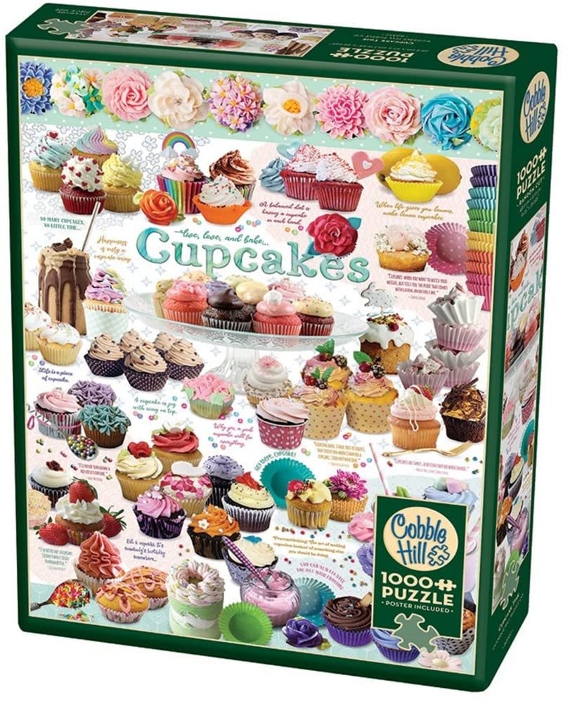 Cupcakes are muffins that believed in miracles. So celebrate "Cupcake Time" by baking up a dozen of these sweet treats, while you assemble this delicious 1000 piece puzzle! 1000pc (Box Size: 8.25" x 11.25" x 2") USD$18.99 Assembled Size: 26.625" x 19.25" Box Size: 8.25" x 11.25" x 2.0" Poster: 1000 Piece UPC: 625012401104 Artist: Cobble Hill Creations Availability:: Ships Monday to Friday. Departs in 2 to 4 business days. Product Code: 40110 All of our puzzles are random cut. Each lovable piece shape is quirky with character and personality. Upon completion, the puzzle forms a beautiful abstract pattern, as opposed to a grid, giving your fingers a wonderful adventure as you slide your hand across the linen print textured paper. Note: In 2023, our 2000pc, 1000pc, 500pc, 350pc, 275pc puzzles include reference posters and the box cover will show "Poster Included" below the logo. If you do not see "Poster Included" on your box cover, then it is manufactured that way and the price point is usually reflected (retailer dependent).