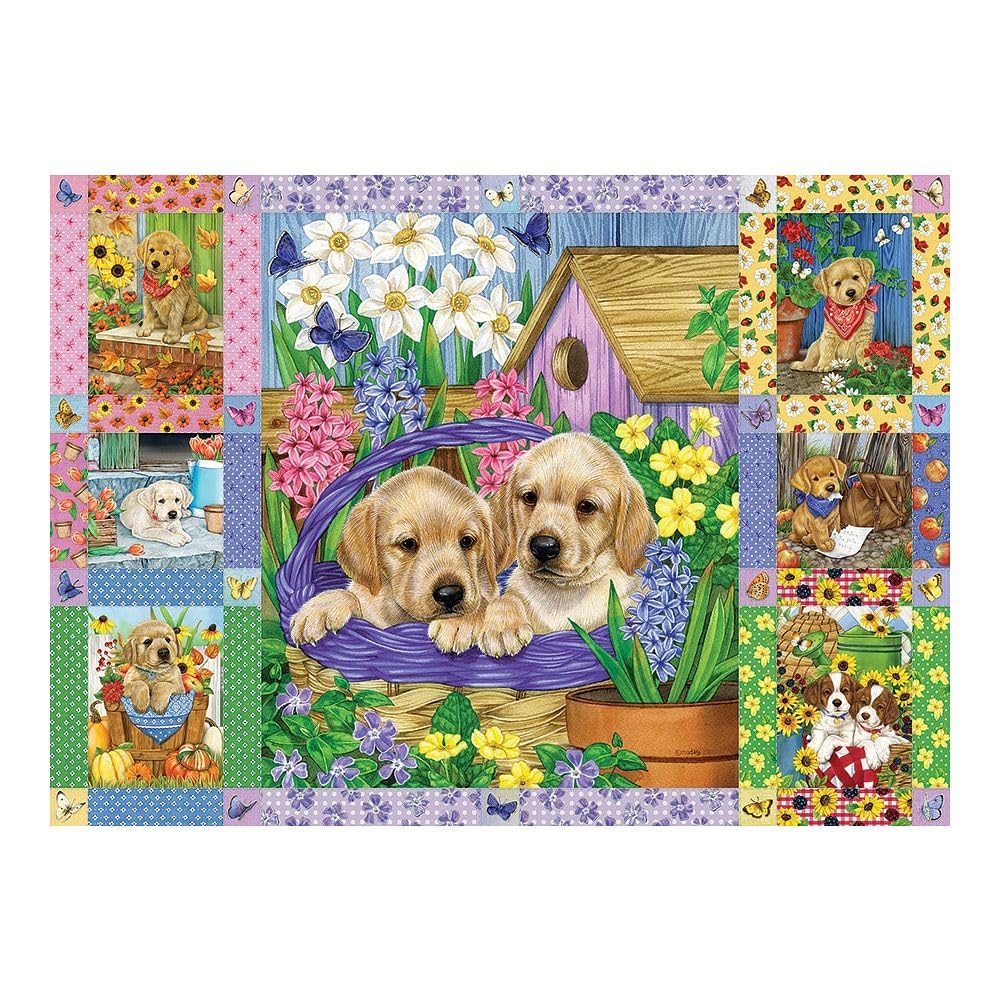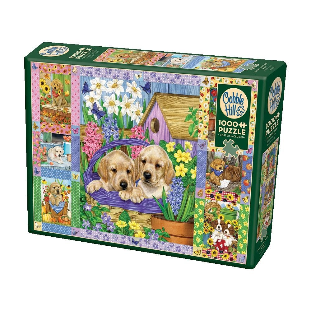 Cobble Hill 1000 Piece Puzzle - Puppies and Posies Quilt - Sample Poster Included