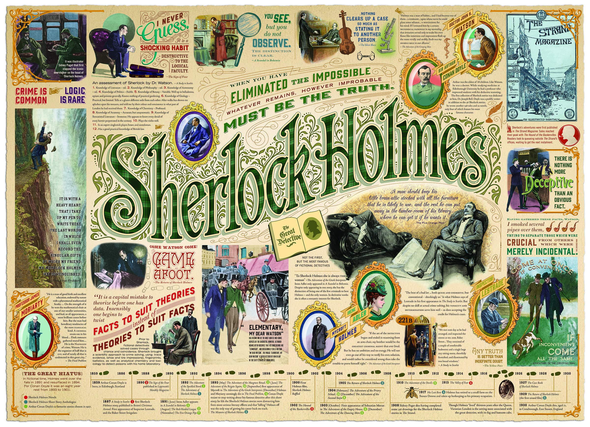 Can you solve this Sherlock puzzle? Learn interesting facts in this information puzzle about all things Mr. Holmes. The puzzle is afoot in this Truly Original Photo (T.O.P.) puzzle created in-house by our design team for your learning pleasure. Take an adventure with Cobble Hill's 1000 piece random cut puzzle that includes a reference poster.