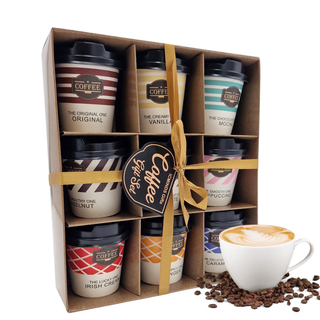 9 coffee flavours of coffee selection gift set - Discover a curated collection of 9 tantalizing coffee flavors in our Flavored Coffee Gift Set. Crafted for the true coffee connoisseur, this set promises an unforgettable journey through a spectrum of delightful tastes and aromas. Ideal for gifting or self-indulgence, this Flavored Coffee Gift Set is a gateway to a world of gourmet coffee delights. The set is beautifully packaged, making it a thoughtful present for coffee enthusiasts on any occasion. Treat yourself or a loved one to this premium selection and embrace the joy of sipping and savoring extraordinary coffee flavors. Elevate your coffee ritual today.