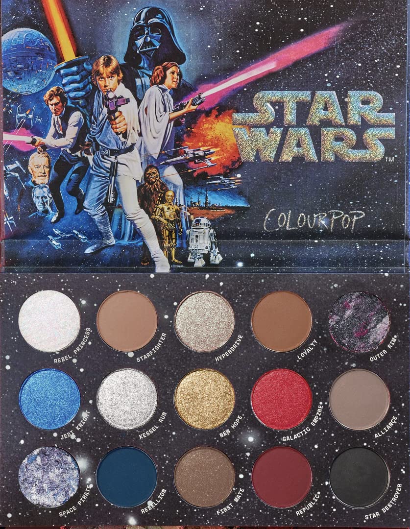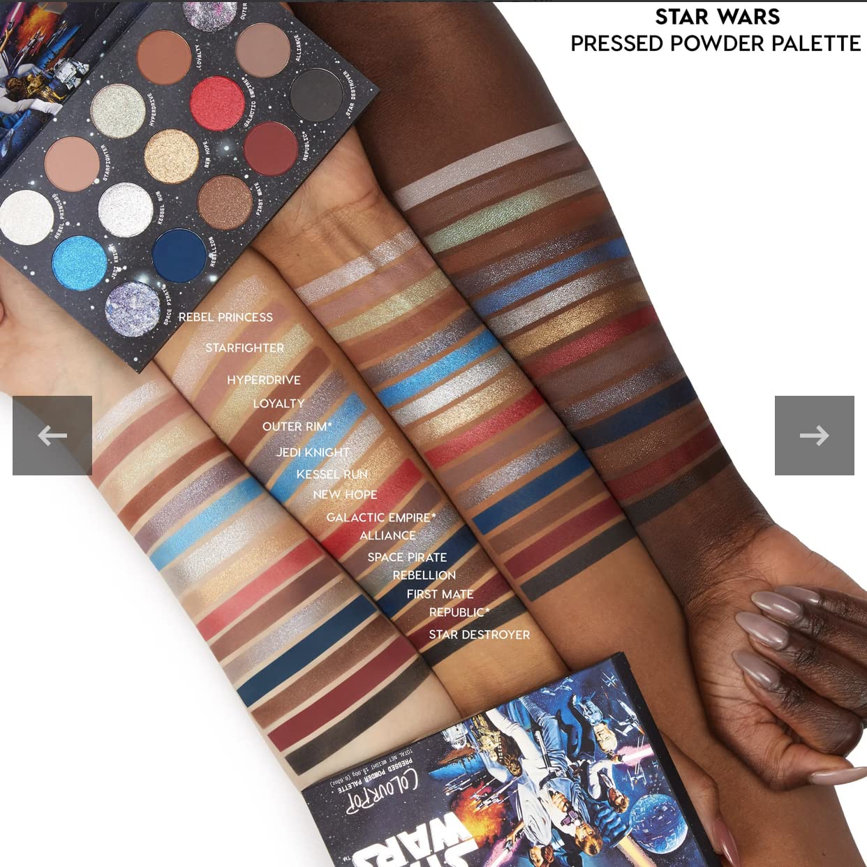 "A long time ago in a galaxy far, far away…." The Rebellion vs The Empire…which will you choose? ?? What it is - It’s our official Star Wars and ColourPop Palette inspired by the original classic Star Wars film with a nostalgic mix of blues, silver, gold and reds to planetary neutrals! ?? Why you’ll luv it - We’re going totally retro with this range of iconic Star Wars shades showing the balance between the light side and the dark side of the Force. ?? Why you need it - Features our innovative Tie Dye Super Shock and galactic Duo Chrome finishes, plus our signature creamy Matte, Matte Sparkle, shimmering Metallic and Ultra-Glitter finishes to create the ultimate Star Wars looks! An iconic mix of stellar shades featuring the Rebellion vs The Empire! ??