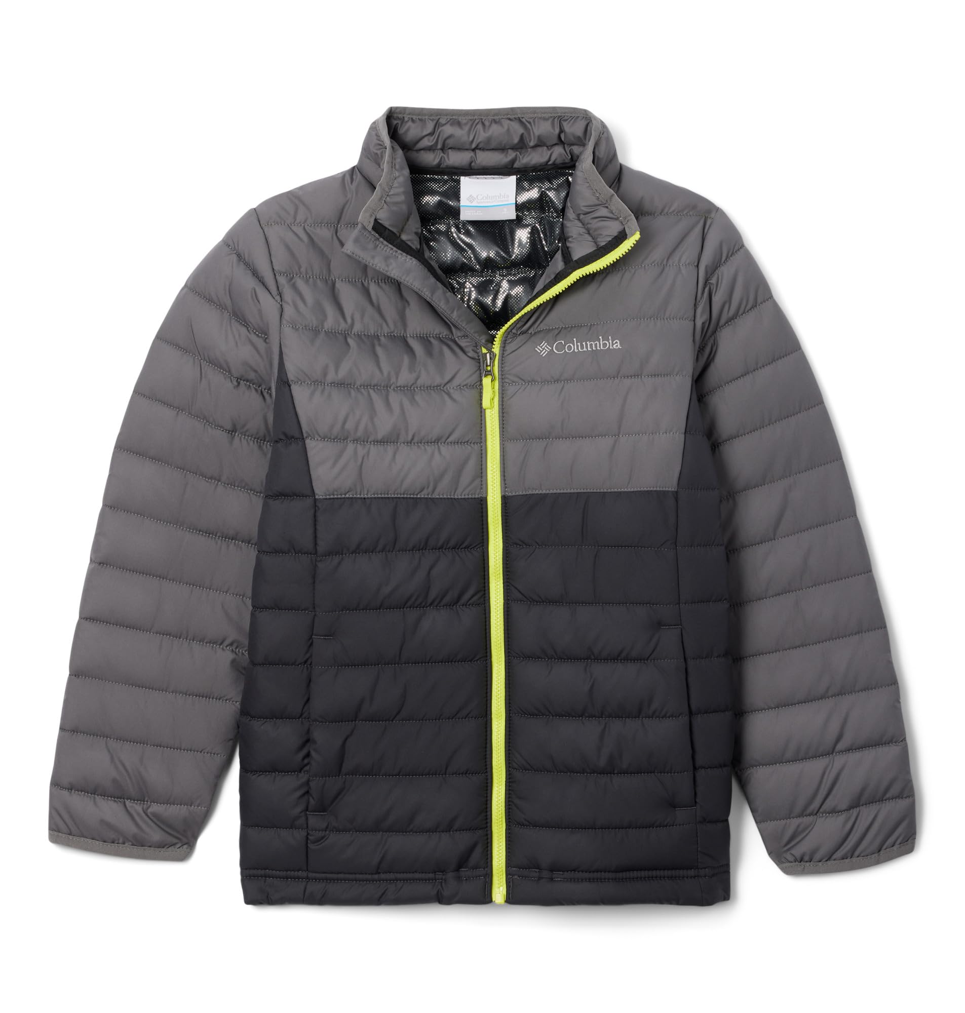 DescriptionYouth lightweight jacket with chin guard for added protection, Ideal for everyday wear - The jacket has reflective Omni-Heat technology which offers you improved insulation to keep you warm even on the coldest days - Water resistant fabric that protects you from light rain showers and fog, Optimal fit thanks to drawcord adjustable hem - The hand pockets give you versatility. Keep your hands warm when needed or store your phone and other accessories without the fear of them falling out - Contents: 1x Columbia Youth Powder Lite Jacket, Colour: Shark, City Grey (Black), Size: S, Art.No. 1802911