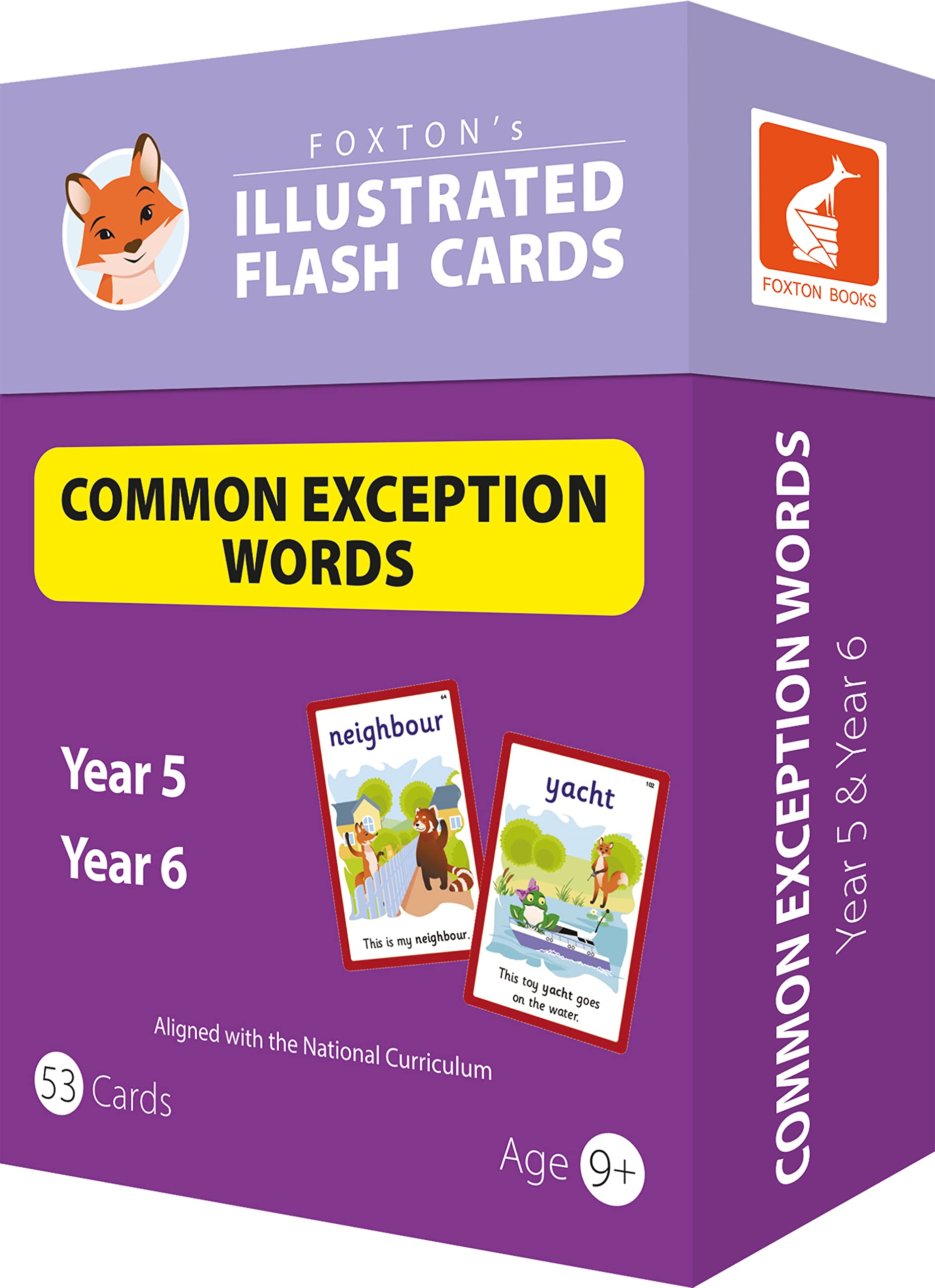These full-colour cards cover the 102 statutory common exception words that children need to learn in Year 5 & Year 6. Each card has a meaningful sentence clearly printed using a font with a cursive style of script, as used within the National Literacy Strategy. They also have an engaging picture explanation to build familiarity and aid memory retention. Many of the pictures also connect with others to build narratives that children can explore and play around with. The combination of visual and story-telling memory aids, using our lovable character, Foxton, and his friends, will help children develop a unique and successful bond with these cards that doesn't come from looking at the words alone. The cards are most effective when used little and often. Choose a time when children feel happy and alert. A few cards on the fridge to go over during breakfast maybe, or while travelling, or waiting for an after-school class. In the classroom, a few cards before break, and then again straight after break, can be highly beneficial. 102 common exception words 53 double-sided cards Full-colour illustrations Example sentences Plain design that promotes focus Ideas for games and fun activities Aligned with the National Curriculum Ages 9 - 11