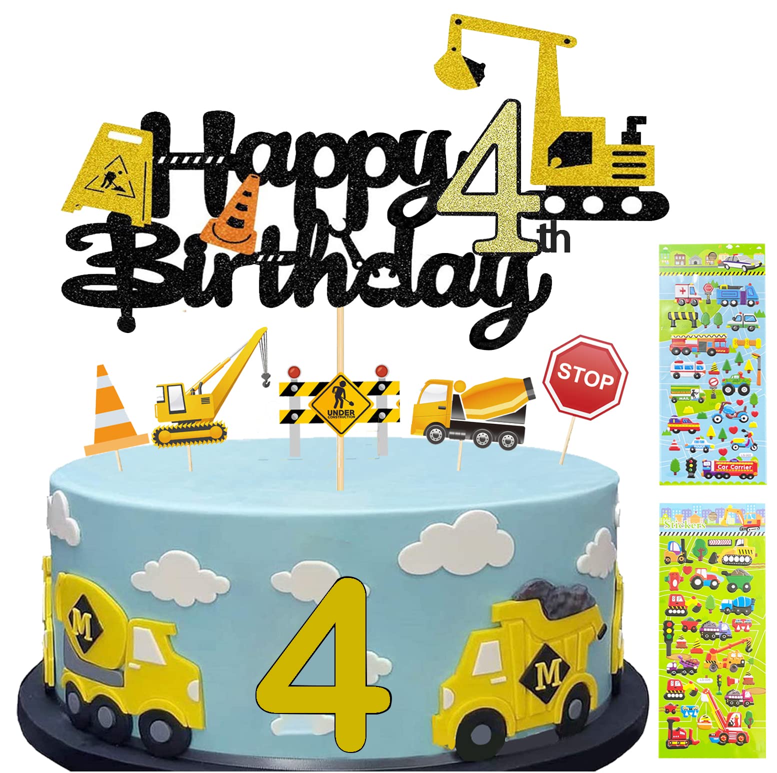 Construction Cake Topper?This set contains 1×Happy 4th Birthday tortendeko ,12 ×excavator cupcake toppers,2×Bagge Kids Stickers