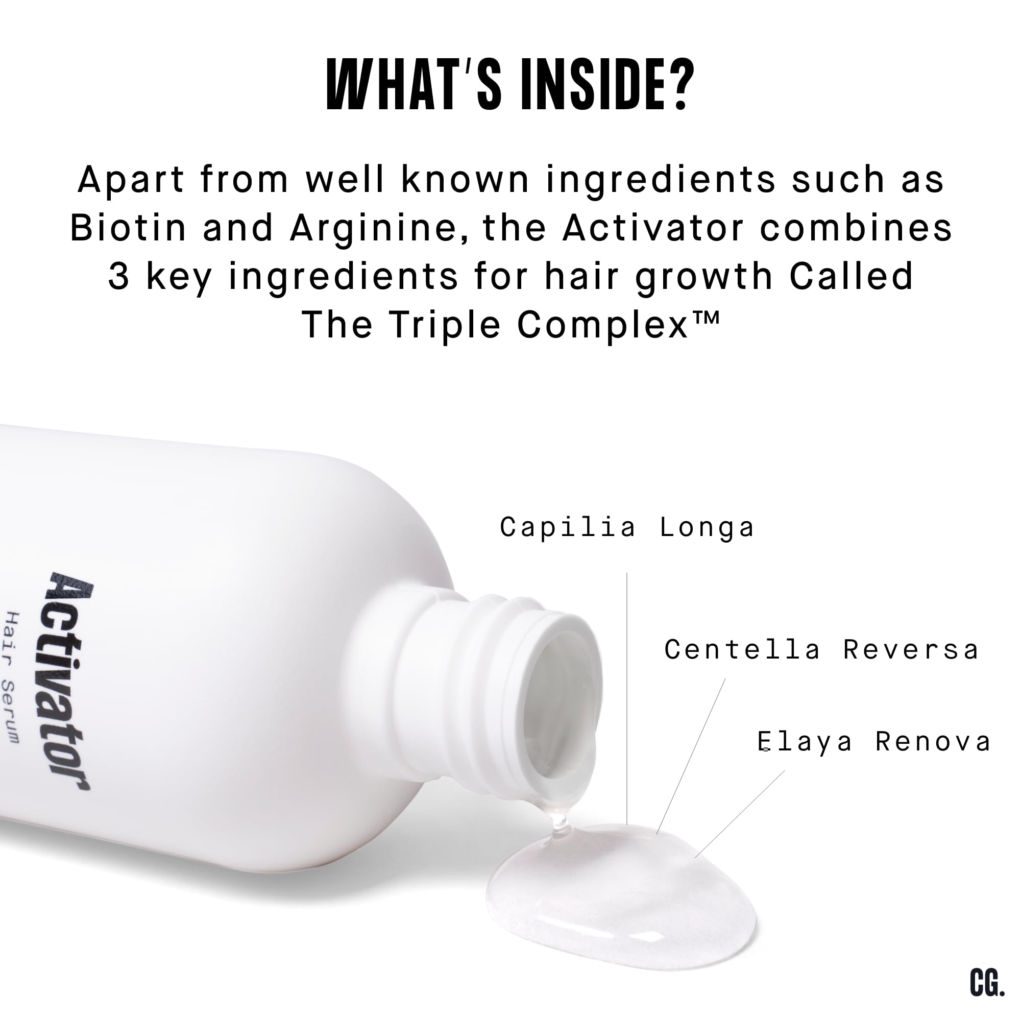 Introducing The Hair Growth Activator, a potent solution crafted to invigorate hair follicles and thwart hair loss. Clinically proven with the Triple Complex featuring Capilia Longa, known to reactivate hair growth by resetting the hair bulb, Centella Reversa, a potent antioxidant accelerating follicle regeneration, and Elaya Renova, delivering deep into the hair strand to significantly bolster hair diameter. Clinical studies substantiate enhanced hair density, decreased hair loss, and heightened follicle activation. Experience the transformative power of nature for fuller, thicker hair. Say goodbye to hair loss worries and embrace a revitalized mane with The Hair Growth Activator.