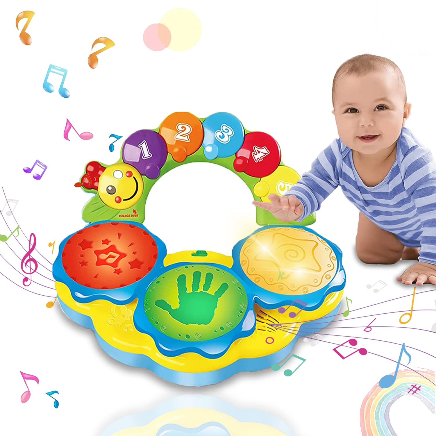 CORLOU Portable Musical Drums Piano Musical Instrument Baby Toys 6 to 12 Months Early Education Music/Lights/Funny Sounds Toys for 1 2 3 4 Year Old Boys Girls Toddlers Kids