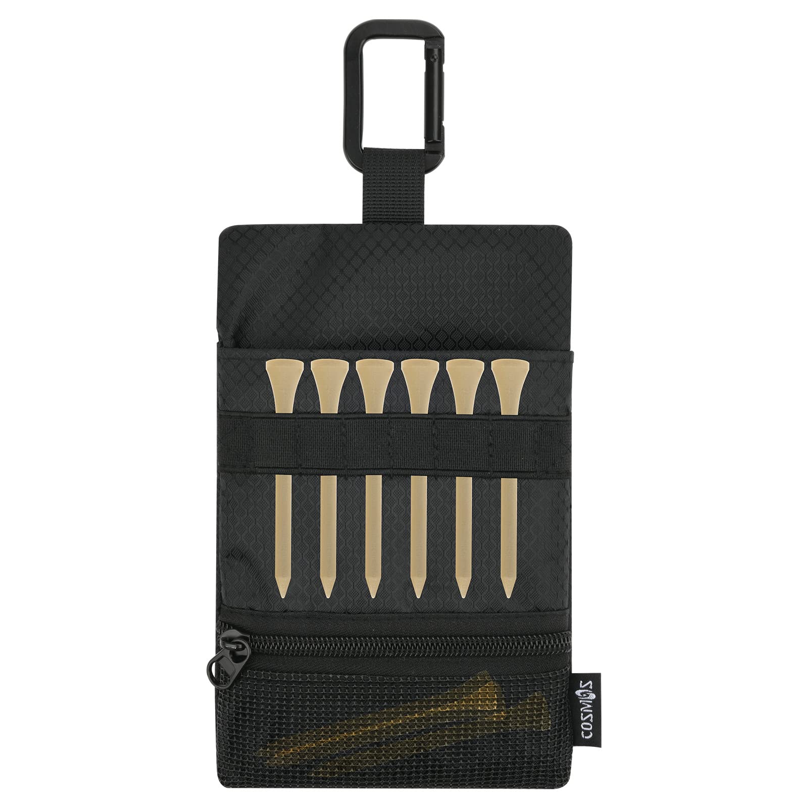 Golf Pouch Bag with Golf Tees Holder and Mesh Pocket, Zippered Valuables Pouch, Golf Ball Pouch Accessories Belt Bag with Carabiner for Extra Phone, Keys, Ball, Tees, Ball Markers, Divot Tools