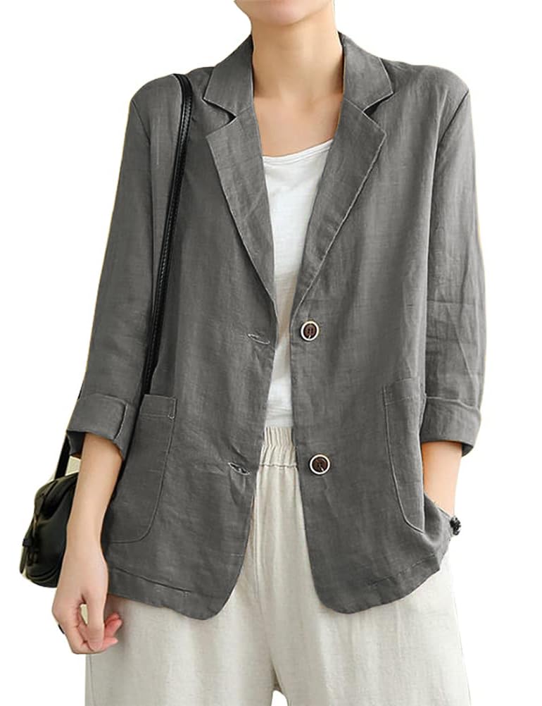Cotton Linen Blazer for Womens Long Sleeve Loose Casual Blazer Jackets(Dark Grey, XL)