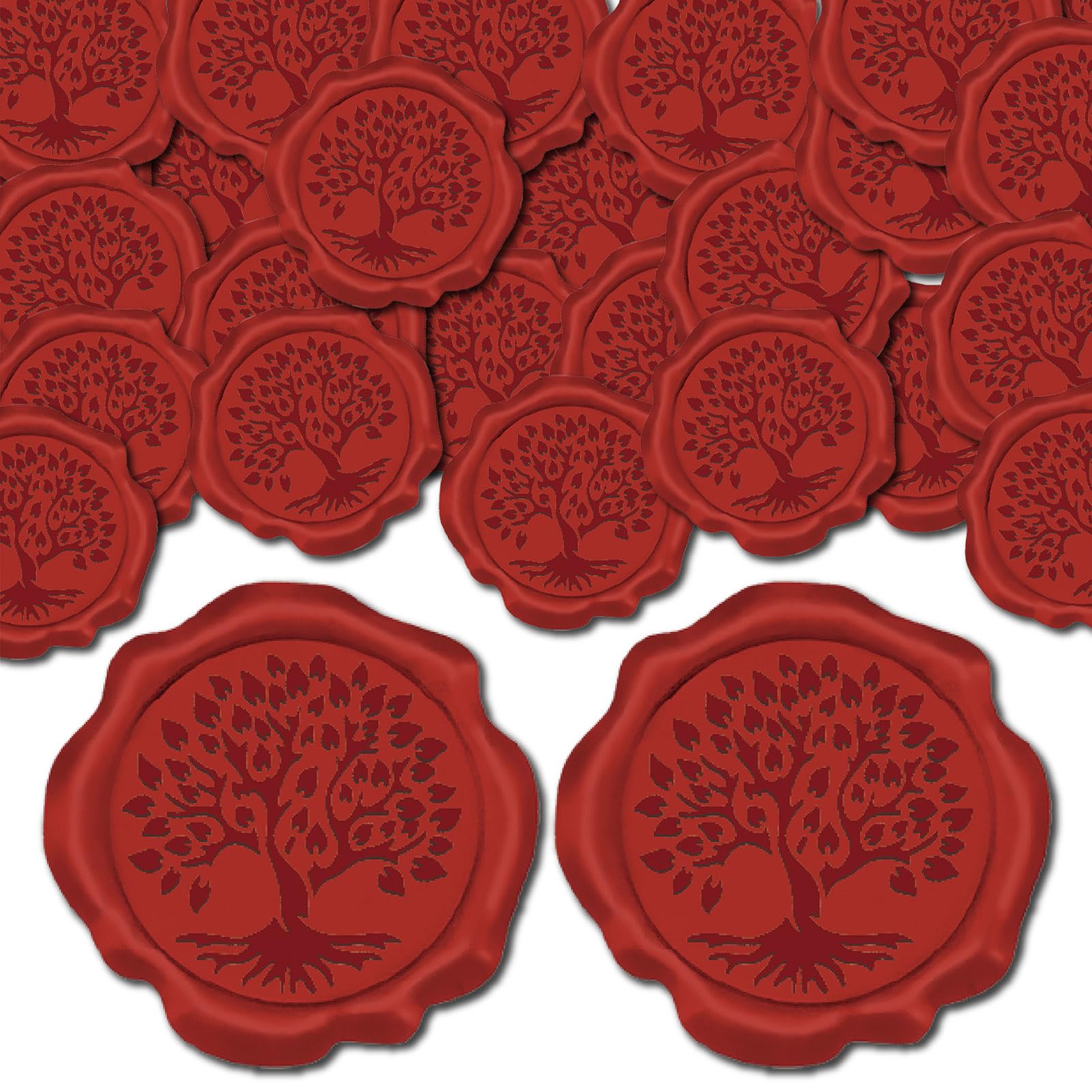 CRASPIRE 50pcs Tree of Life Wax Seal Stickers Dark Red Decoration Stickers Adhesive Envelope Sealing Stickers for Wedding Invitation Envelope Decor Christmas Birthday Party Craft Scrapbook DIY