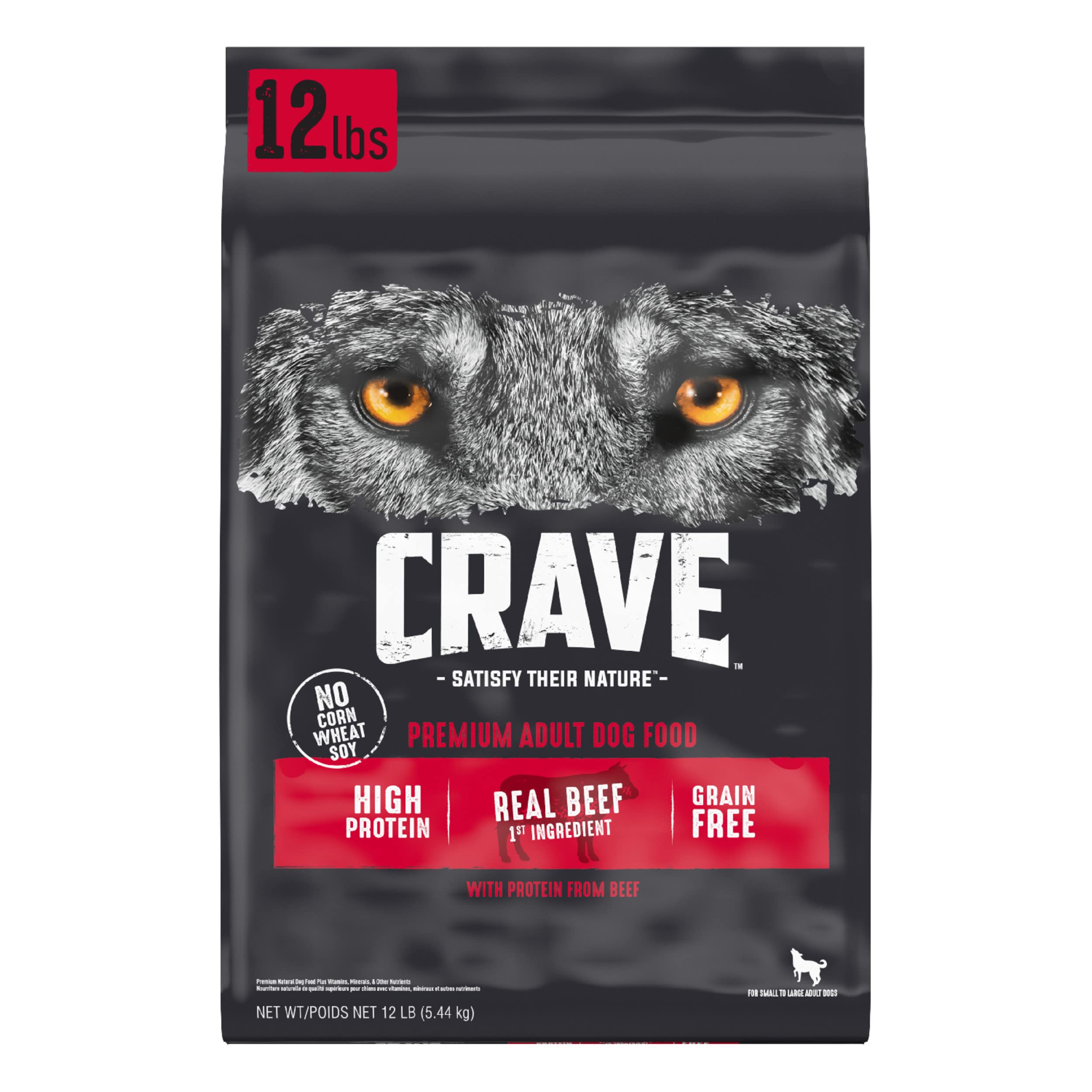 CRAVE Grain Free High Protein Adult Dry Dog Food, Beef, 12 lb. Bag