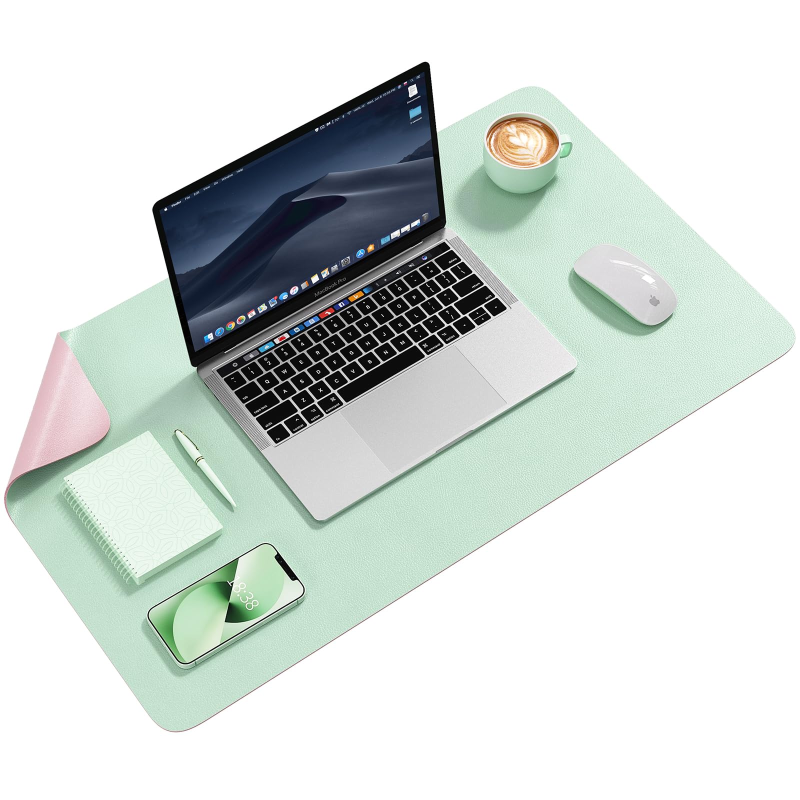 Crenovo Double Side Desk Mat, 23.6" x 13.7" PU Leather Desk Protector, Waterproof Large Mouse Pad, Double Side Desk Mat for Desktop, Desk Pad for Keyboard and Mouse, Office and Home, Green x Pink