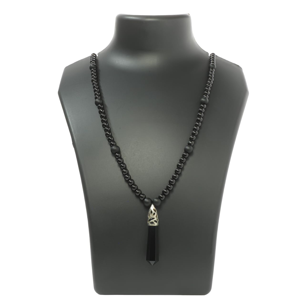 Experience the harmonizing power of chakras with our carefully curated healing stones. Unveil a journey of self-discovery as you align your energy centers with the wisdom of ancient practices. This Tumbled Stone is carefully selected from our diverse range. Red Jasper, Hematite, Black agate, Black tourmaline, Bloodstone, Dalmatian Jasper, Hematite, Narmada, Smokey Quartz, Leopard Jasper, and Black Obsidian for grounding and stability, in tune with the Root Chakra. Orange Aventurine, Sunstone, Orange Selenite, and Moonstone for creative flow and emotional balance linked to the Sacral Chakra. Yellow Aventurine, Golden Pyrite, and Golden Tiger's Eye Confidence and personal power igniting the Solar Plexus Chakra. Rose Quartz, Green Aventurine, Unakite, Moss Agate, Amazonite, Serpentine, Vasonite, Green Kyanite, and Rhodonite for love and compassion, nurturing the Heart Chakra. Labradorite, Blue Aventurine, Amethyst, Blue Angelite, and Lapis Lazuli for clear communication and self-expression, attuned to the Throat Chakra. Amethyst, Sodalite, Fluorite, Opalite, Larvikite, and Lepidolite for intuition and spiritual awareness, connecting with the Third Eye Chakra. Clear Quartz, Amethyst, Howlite, Rainbow Moonstone, White Agate, Nuummite, and Selenite for spiritual connection and enlightenment, embracing the Crown Chakra. Crafted to elevate your well-being, our stones are hand-picked to radiate positive energy. Each stone is as unique as you are, promoting balance and harmony in your physical, emotional, and spiritual realms. Embrace the journey within, embark on a path of transformation, and let the energy of these stones guide you toward greater alignment. Elevate your energy, elevate your life.The string size is 28 inches, Bead Size : 6 & 8 mm approximately, Obsidian pendant is 1.25 to 1.5 inch approx.The weight would be around 40 grams approx and is handcrafted.