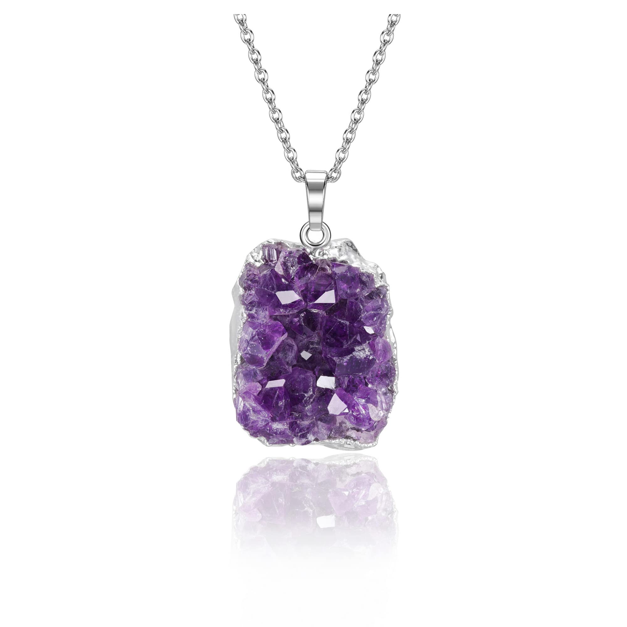 CrystalTears Amethyst Healing Crystal Necklace Natural Raw Amethyst Quartz Crystal Cluster Stone Pendant Necklace Crystal Gifts for Women Mum Mothers Day