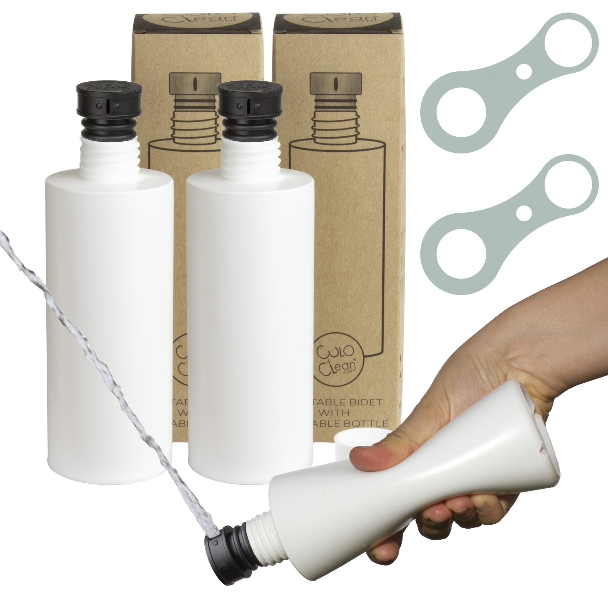 CuloClean 2pcs Portable Bidet with Silent Bottle (330ml). Ideal for Toilet, Travel, Hiking or Camping. Ultralight (48g, 1,7 oz). (CuloClean+Bottle, 2pcs Black)