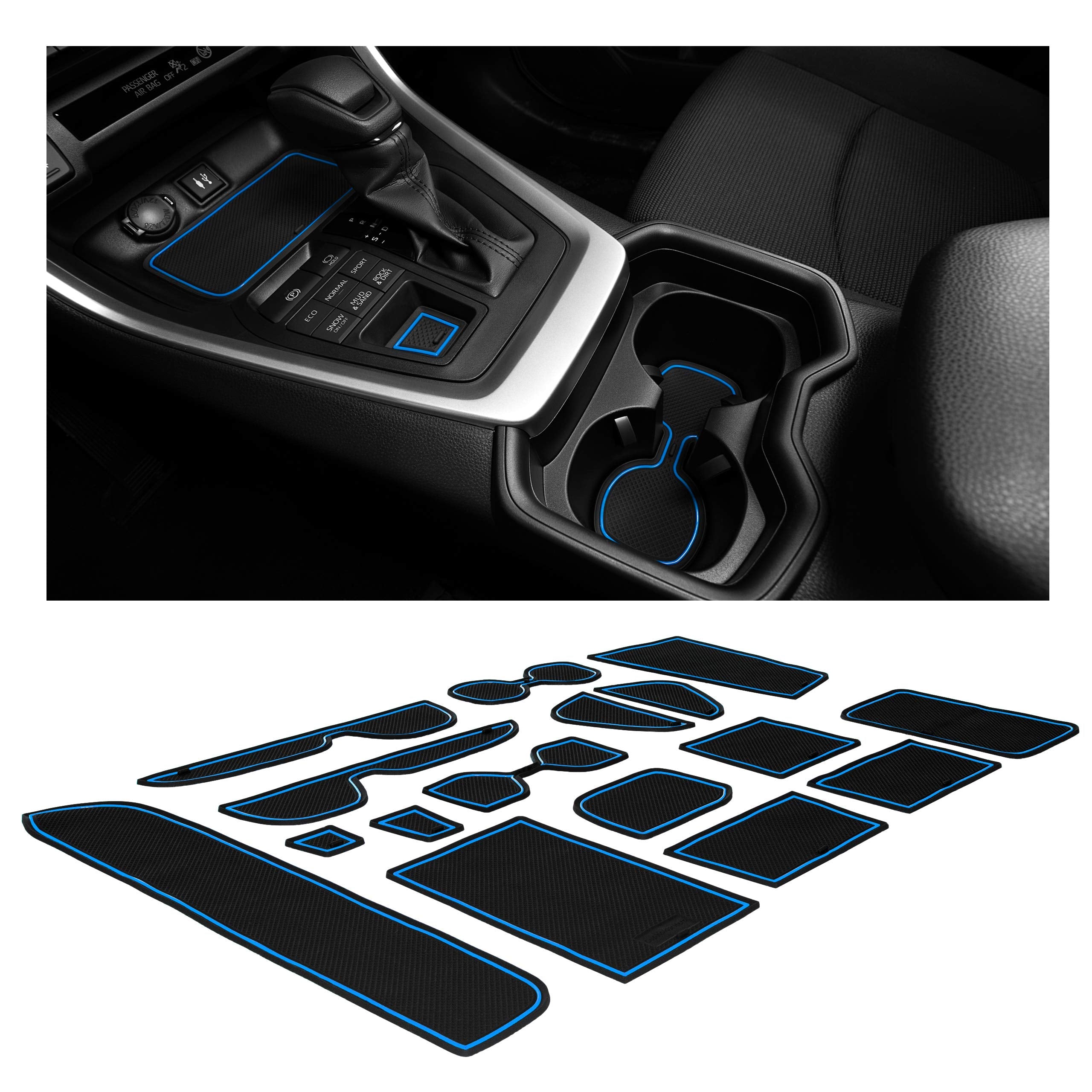 CupHolderHero fits Toyota RAV4 Accessories 2019-2024 Premium Custom Interior Non-Slip Anti Dust Cup Holder Inserts, Center Console Liner Mats, Door Pocket Liners 15pc Set (Blue Trim)