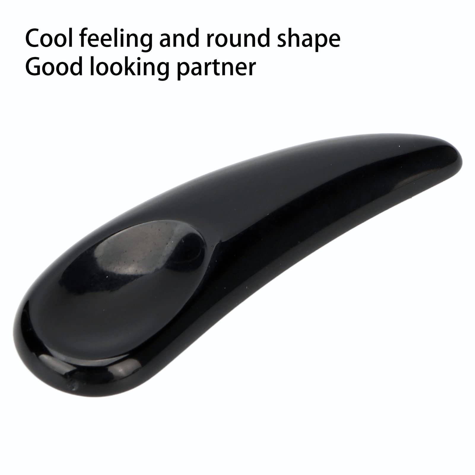 Curved Cosmetic Spatula, Mini Jade Stone Eye Cream Applicator Face Gua Sha Massage Stick for Reduce Puffiness and Relieving Facial Tension (Black)