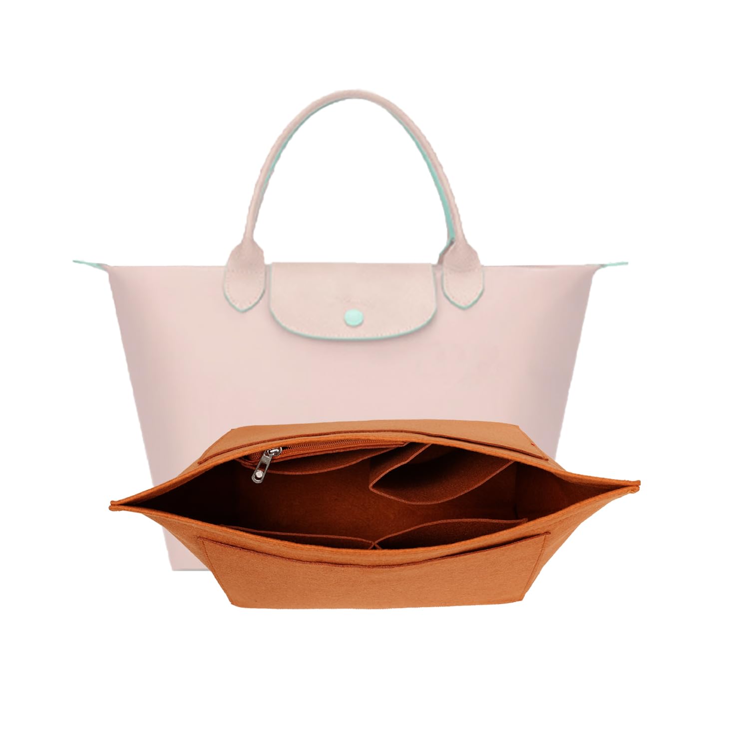D.DUO Purse Organizer, Multi-Pocket Felt Handbag Organizer, Folding Tote Bag organizer insert for Insert Wallet Organizer for Longchamp (Brown, Medium)