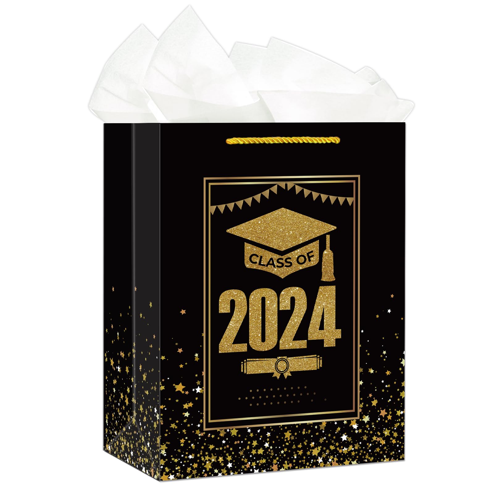 D4DREAM 2024 Graduation Gift Bags Class of 2024 Graduation Gift Bag with Tissue Paper and Handle 11.5" Congratulations Graduation Paper Wrap Bags for High School College Grads Graduation Party Favors