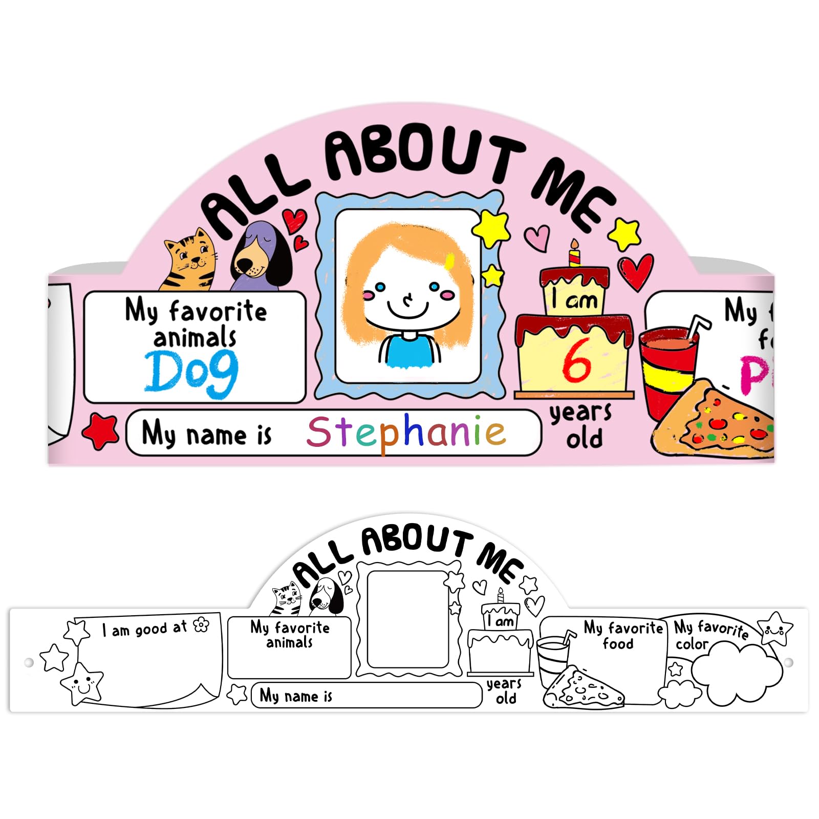 D4DREAM 24 Packs Back to School Crown Craft Kits for Kids Paper First Day of School Party Hats Supplies All About Me Paper Crown Hats for Kindergarten Preschool Elementary School Game Party Supplies