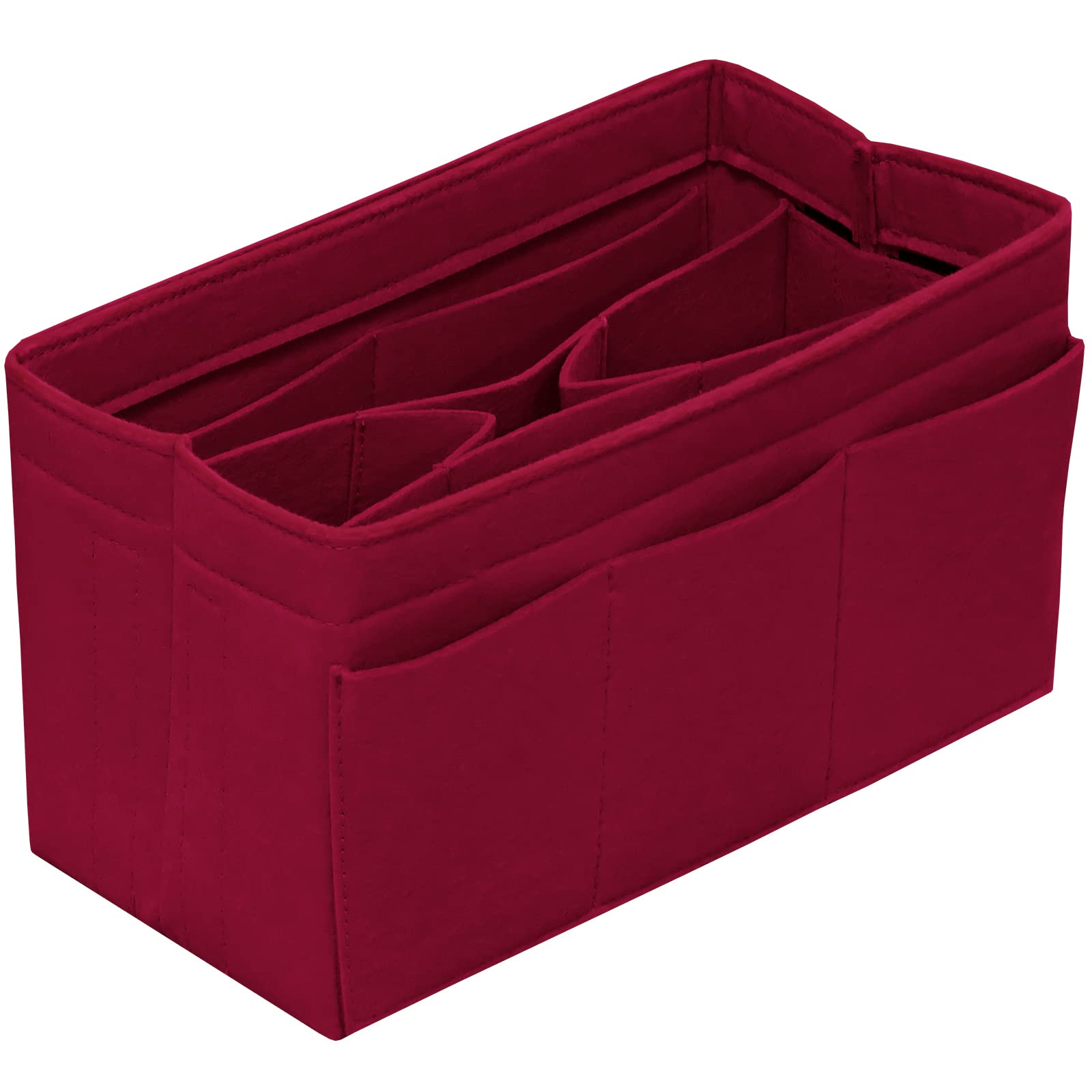 DailyPlus Purse Organizer Insert Felt Bag Organizer Handbag Organizer Insert Bag In Bag Organizer for Tote Purse Bag 14 Pockets Dark Red Medium