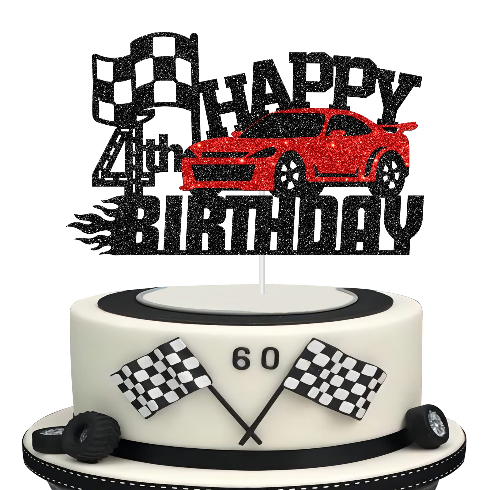 Dalaber Happy 4th Birthday Cake Topper for Kids, Boys - Race Car Theme Birthday Party Decoration Supplies - Four Years Old Birthday Party Cake Decors