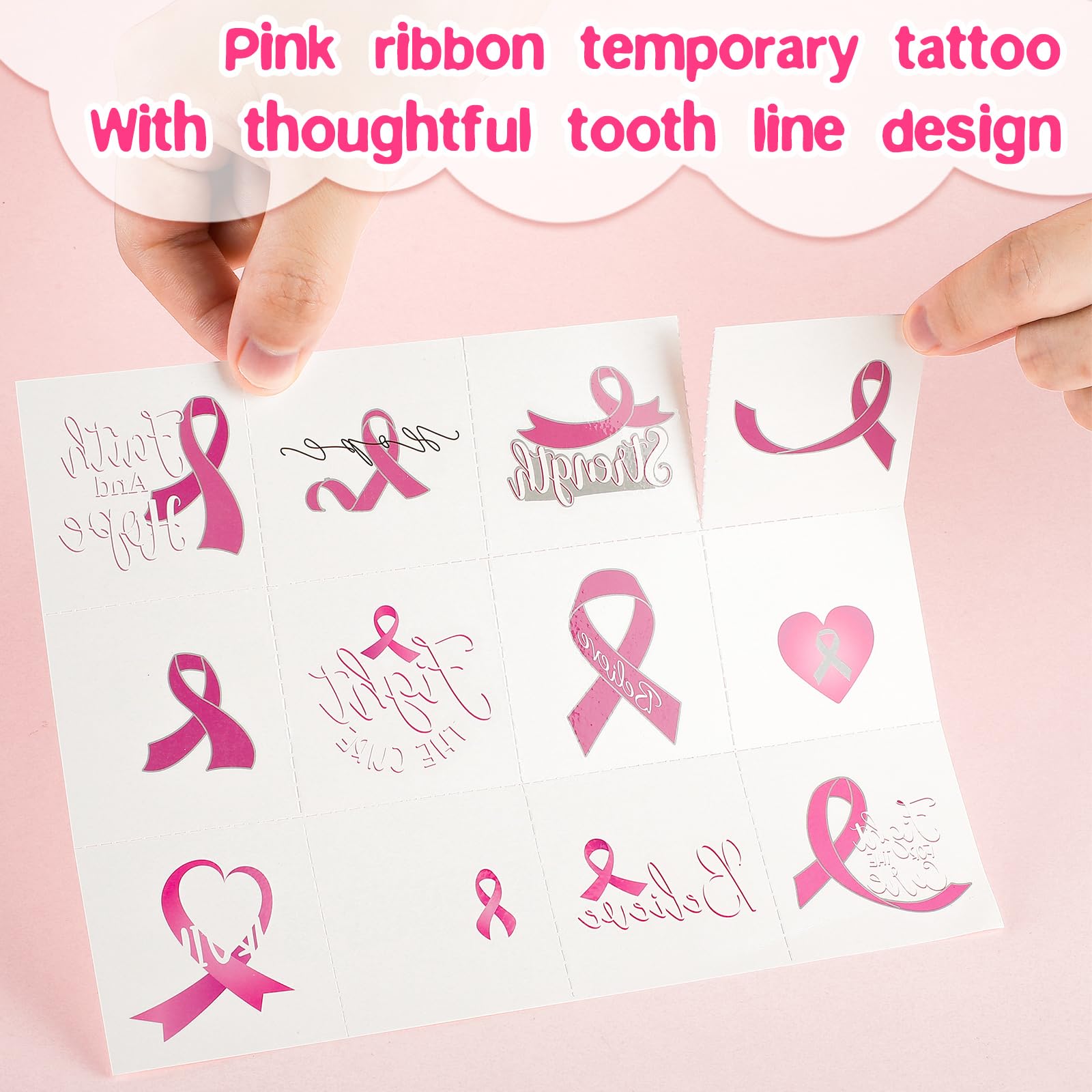 Dansib 360 Pcs Breast Cancer Awareness Temporary Tattoos Pink Ribbon Tattoos Removable Breast Cancer Tattoos Accessories for Women Breast Cancer Awareness Gifts Party Favors