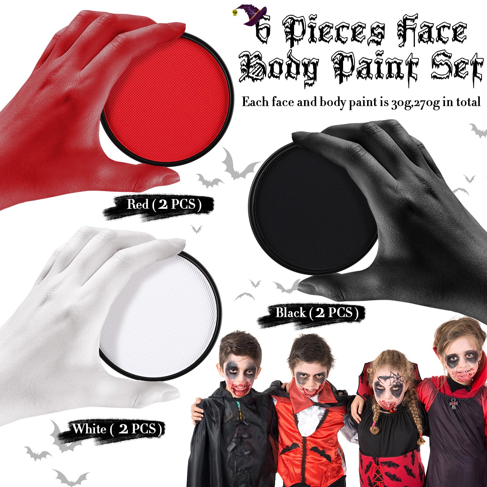 Dansib 6 Pcs Clown Makeup Kit Classic Red Face and Body Paint Washable Black Makeup Water Activated Pretend Costume and Dress up Makeup for Kids Adults Cosplay and Party