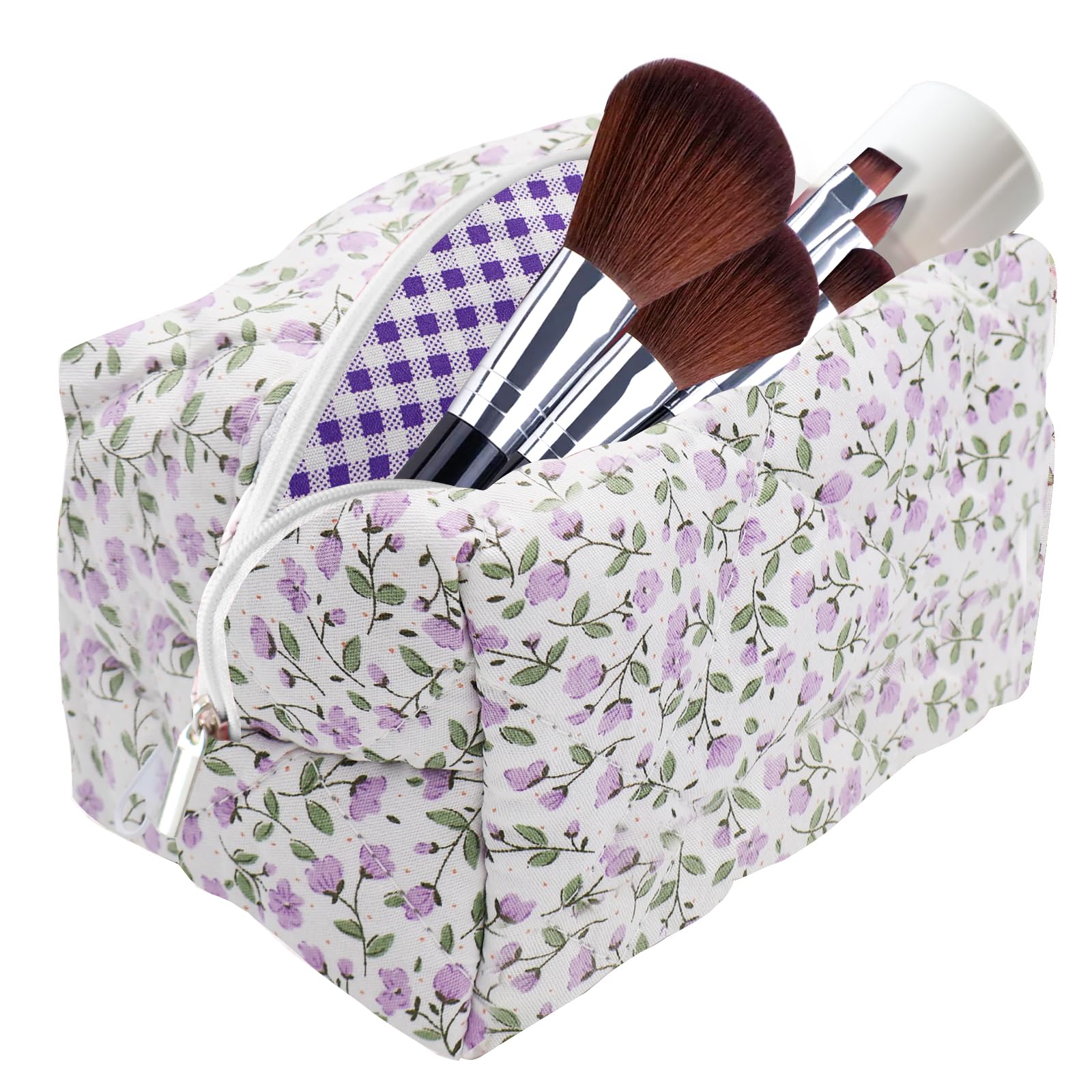 MAKEUP BAG LARGE COSMETIC BAG QUILTED POUCH COQUETTE FLORAL
