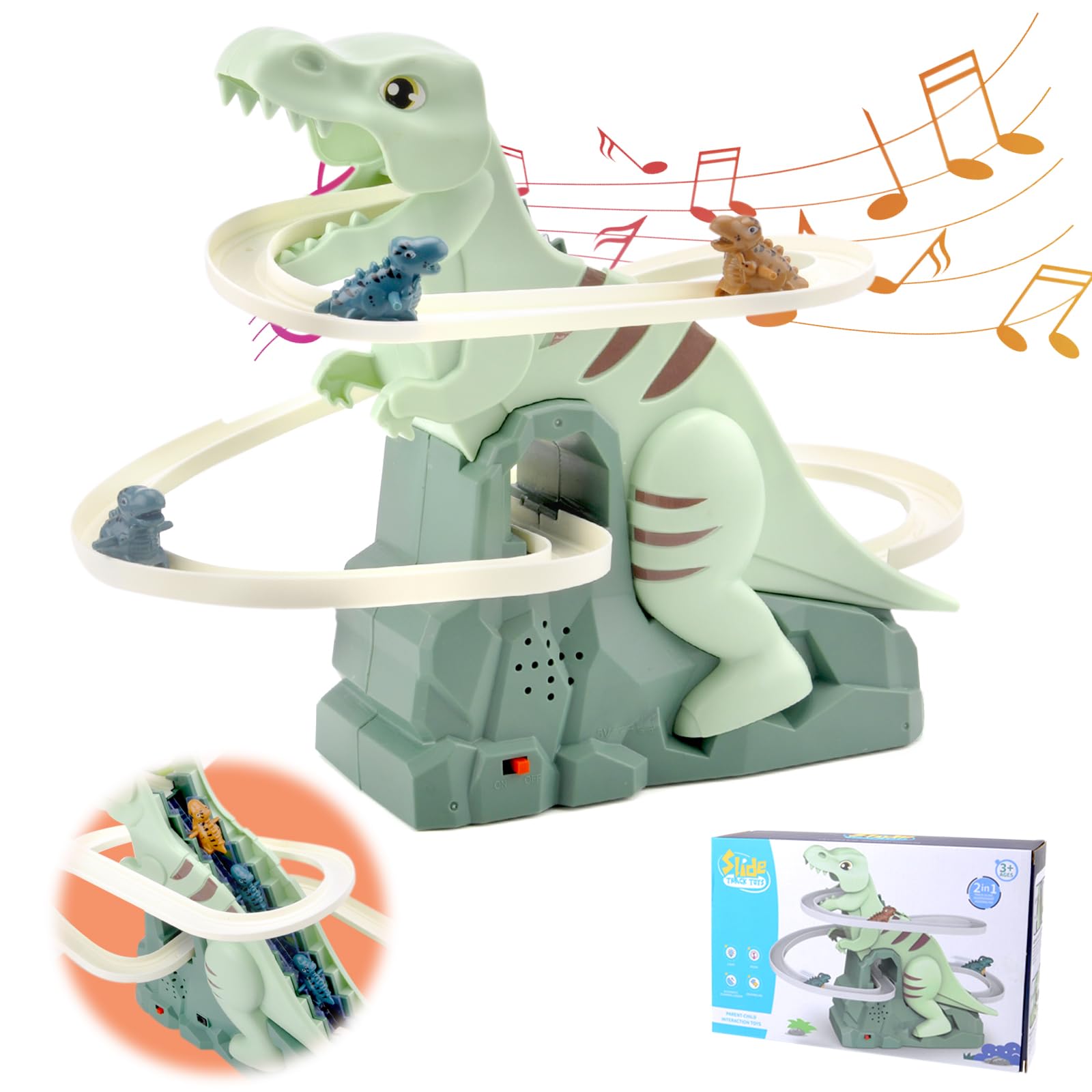 DAWRIS Dino Slide, 2024 New Dino Slide Toy, Dino Climbing Slide Toy with Lights and Music, Dinosaur Roller Coaster Toy, Dinosaur Climbing Slide Toy for Toddlers and Kids