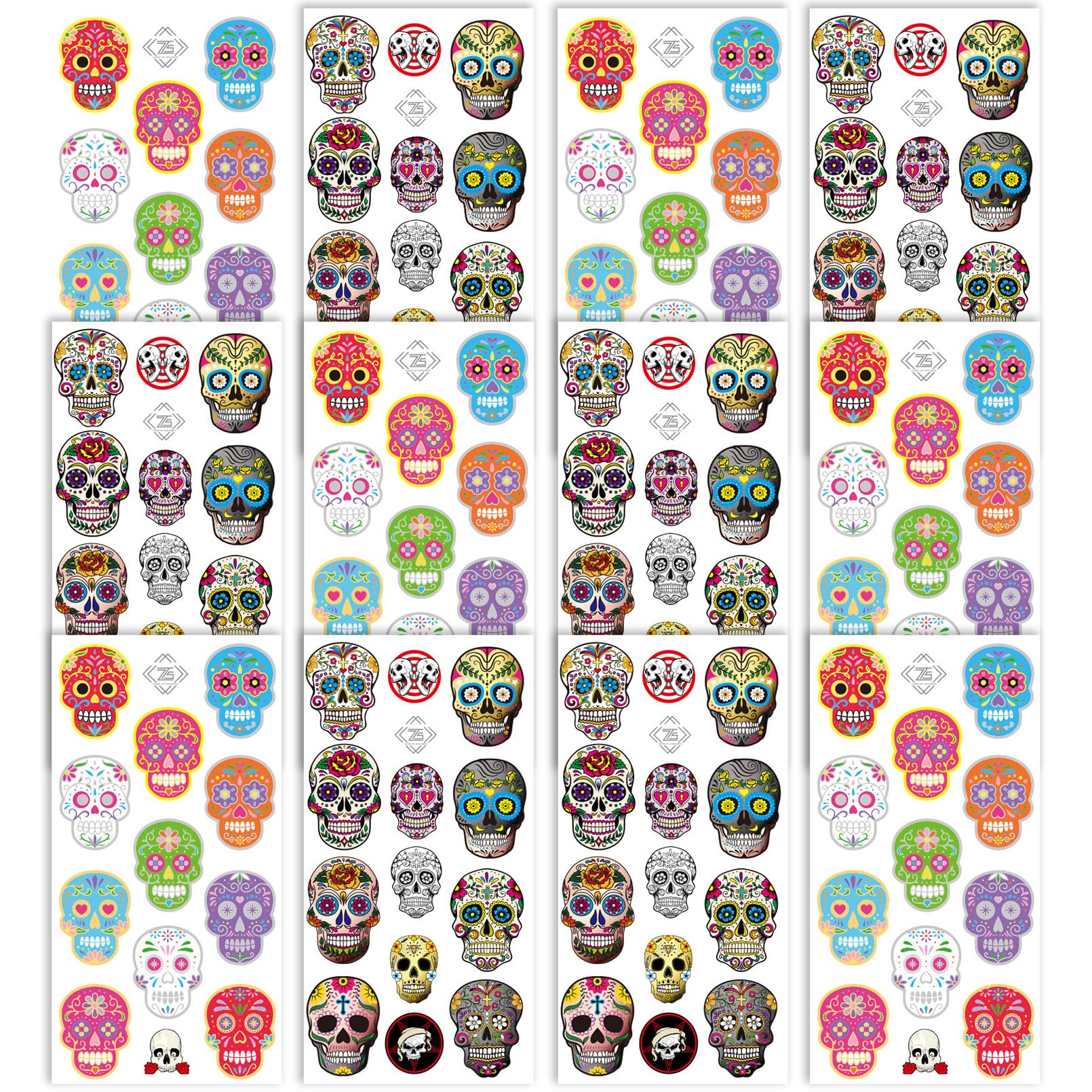 Day of the Dead Sugar Skull Tattoos (156PCS),Halloween Temporary Face Tattoos Sugar Skull Skeleton Tattoo for kids Boys Girls Halloween Party Favor Supplies