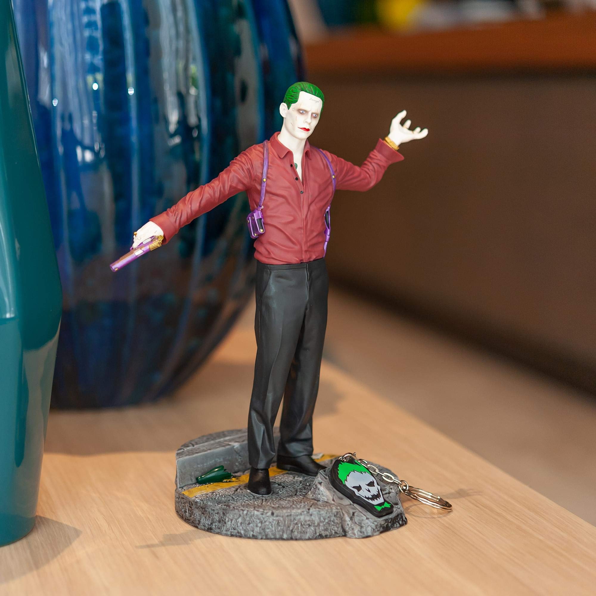 DescriptionJust under 10" tall, The Joker will use any means necessary to keep your keys. Although this criminal genius may be insance, he'll ensure you don't go crazy constantly looking for your keys! This statue is made of durable PVC plastic and feature a removable, dual-sided key chain that nests in the base. Highly detailed, with exceptional attention to likeness and paint, this statue will fit right in on your desk, entryway or next to your collectibles! Great for display at your home or office.