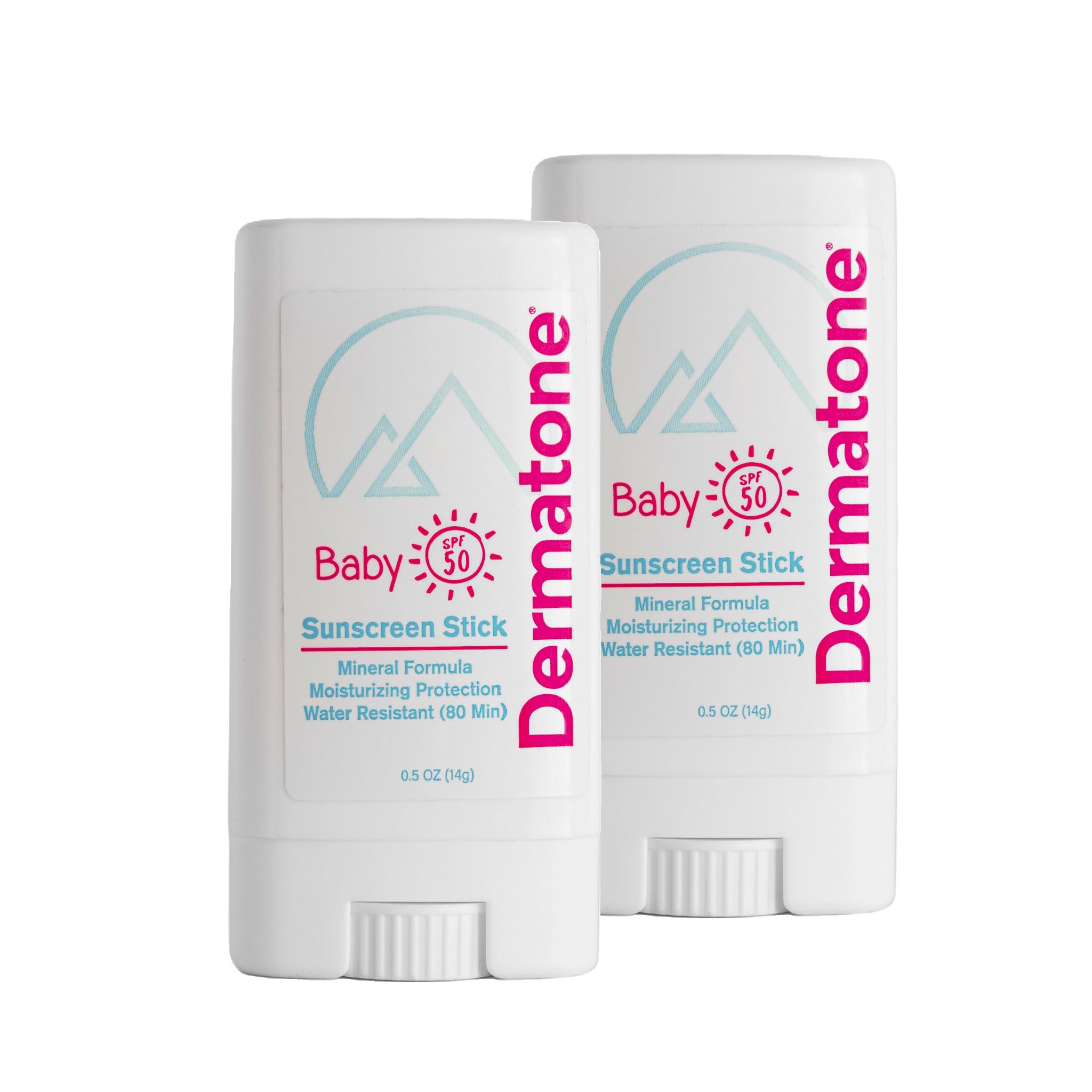 Dermatone's Baby Mineral SPF 50 formula contains a unique zinc formula to safeguard your skin while providing the sun protection you need. Reef Safe, Water resistant (80 minutes) and Moisturizing. Now in a convenient hands- free "No Touch" twist up stick. Great for outdoor activities.