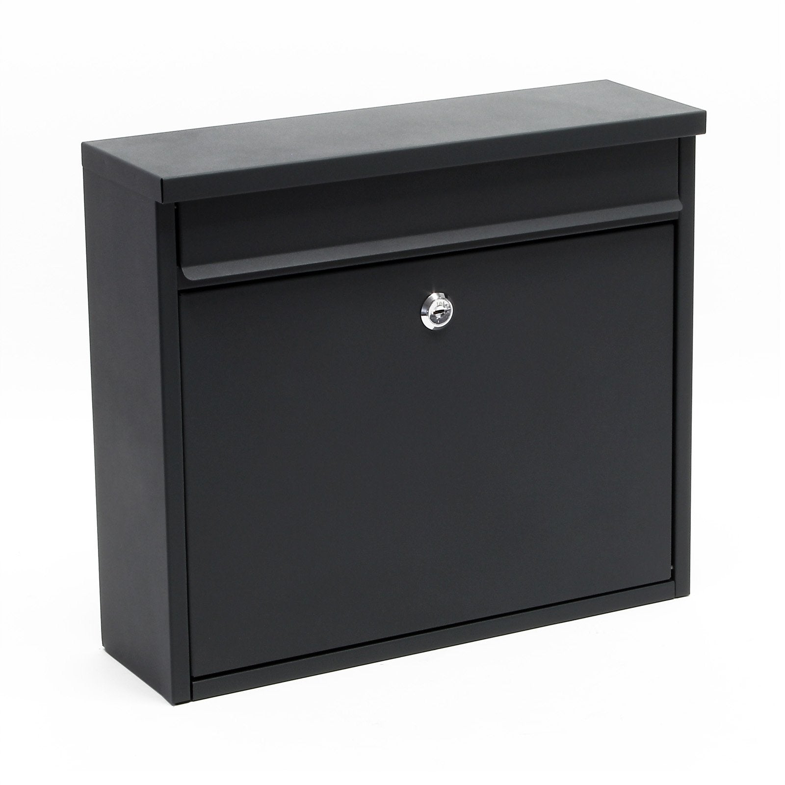 Letterbox made of coated steel in timeless simple optic. The letterbox has a large pigeon hole, the front flap is lockable and the letterbox is delivered with two keys. The assembly material is also included in delivery.