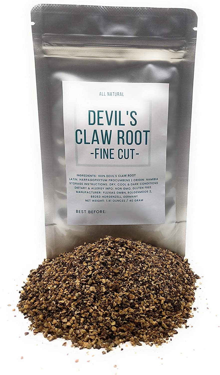 Devil's Claw Root Herb - Fine Cut, Dried & Natural Harpagophytum Procumbens - Net Weight: 1.41 ounces / 40 Grams