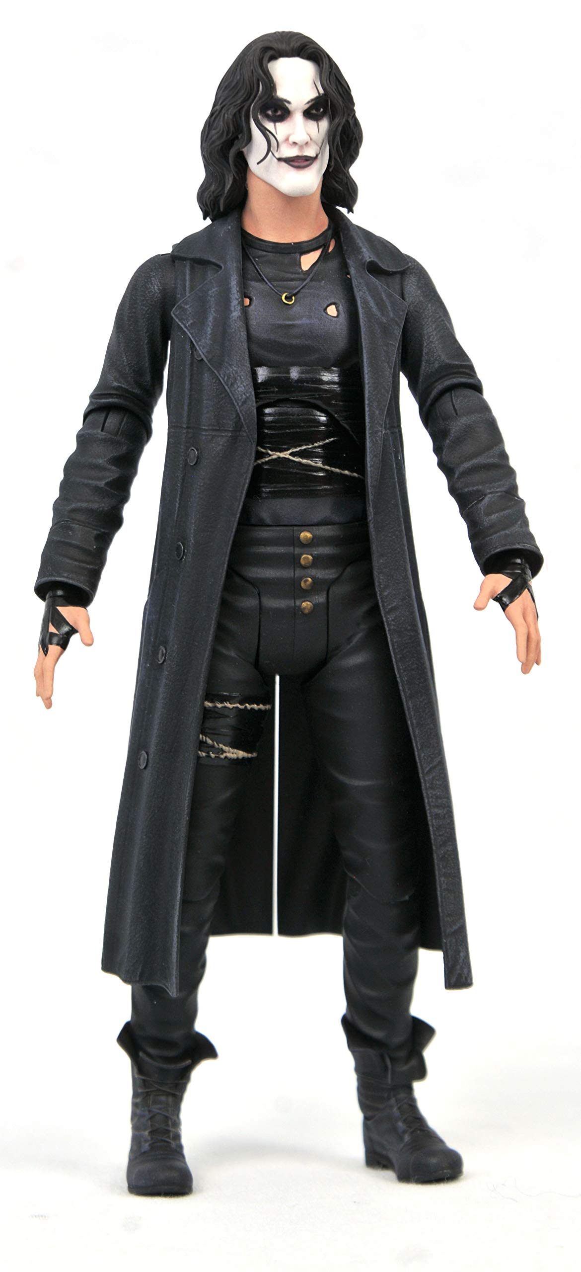 A Diamond Select Toys release! Eric Draven has returned, and the Crow lives again! This 7-inch scale deluxe action figure of the Crow is based on his trench coat-wearing appearance in the 1994 movie and features 16 points of articulation. Accessories include gravestone, guitar, crow and interchangeable hands. Designed by Yuri Tming, sculpted by Chris Dahlberg.