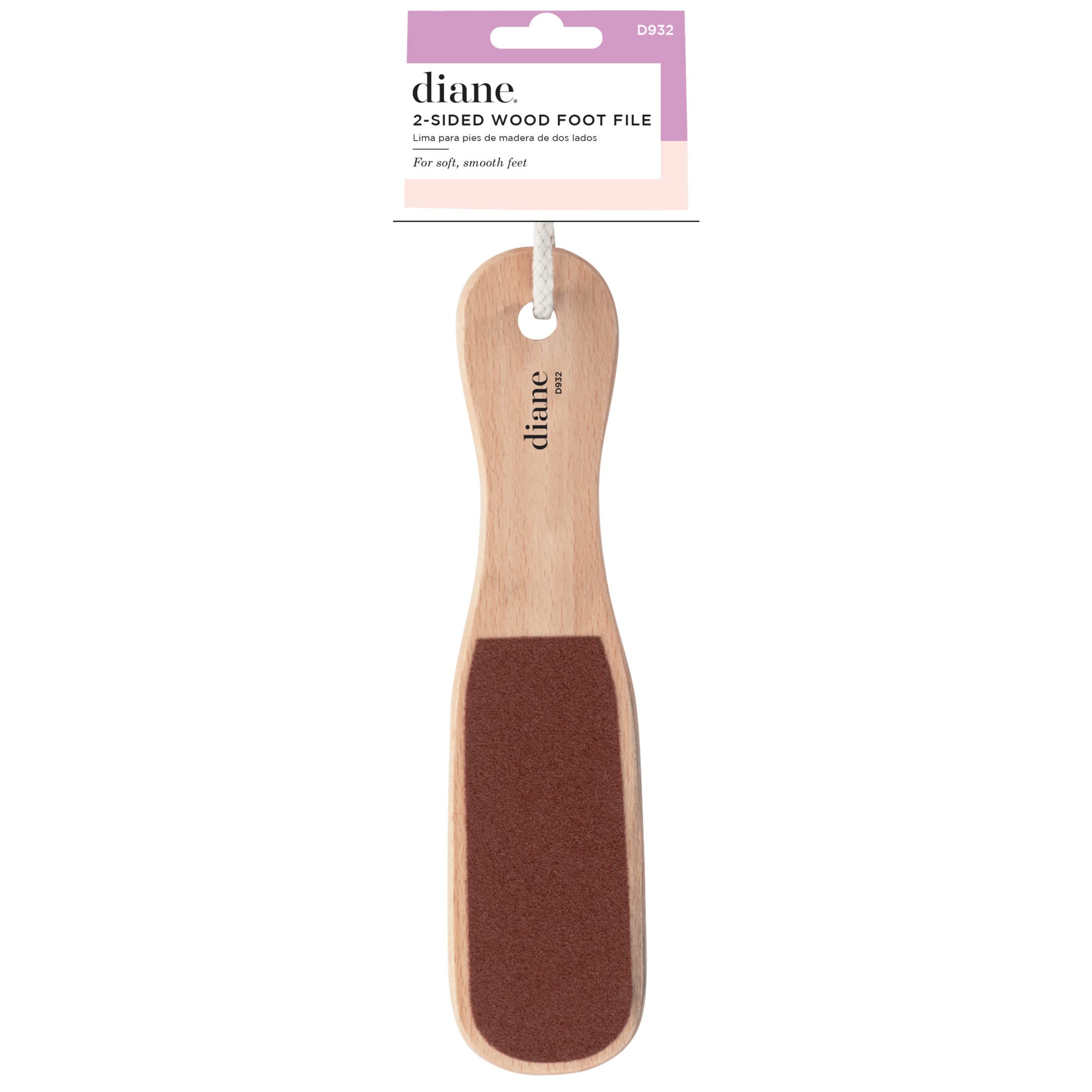 The Diane Foot File is the perfect tool for achieving soft, smooth feet. This durable wood handle foot smoother and callus eliminator is 10 inches tall and 2 ? wide. Using the foot file is simple. Apply the coarse red side to dry sanitized feet, and move the file back and forth rapidly to watch calluses and hard skin disappear. Then use your favorite gel, cream, or foot scrub, rinse, and buff your feet to perfection with the smooth black side. Finish with a foot masque followed by lotion for best results.