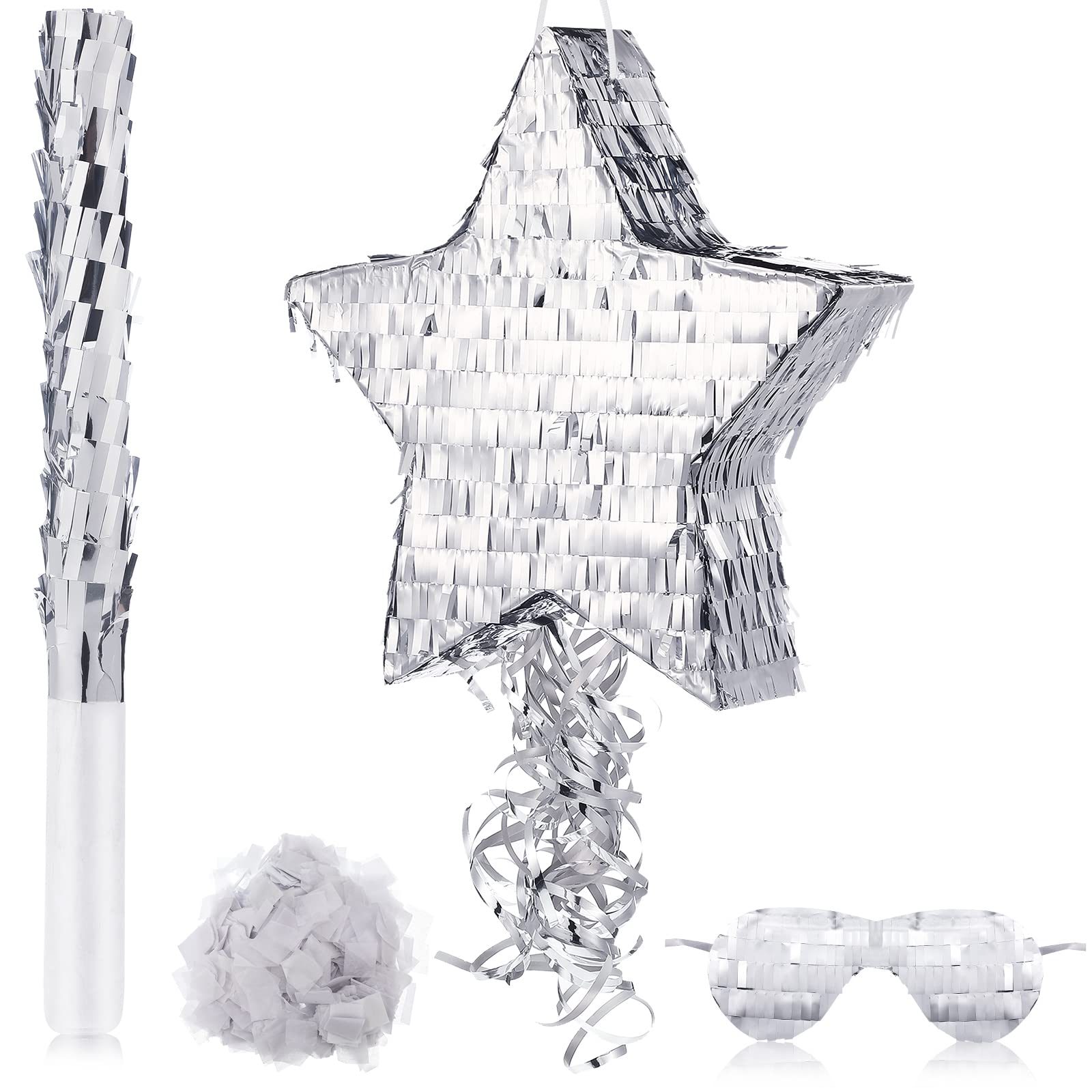 Disco Ball Small Piñata with Piñata Stick Blindfold and Confetti, Silver Foil Piñatas for Birthday Party, Small Piñata for Kids Adults Retro Birthday Game Party Decorations Supplies(Star)