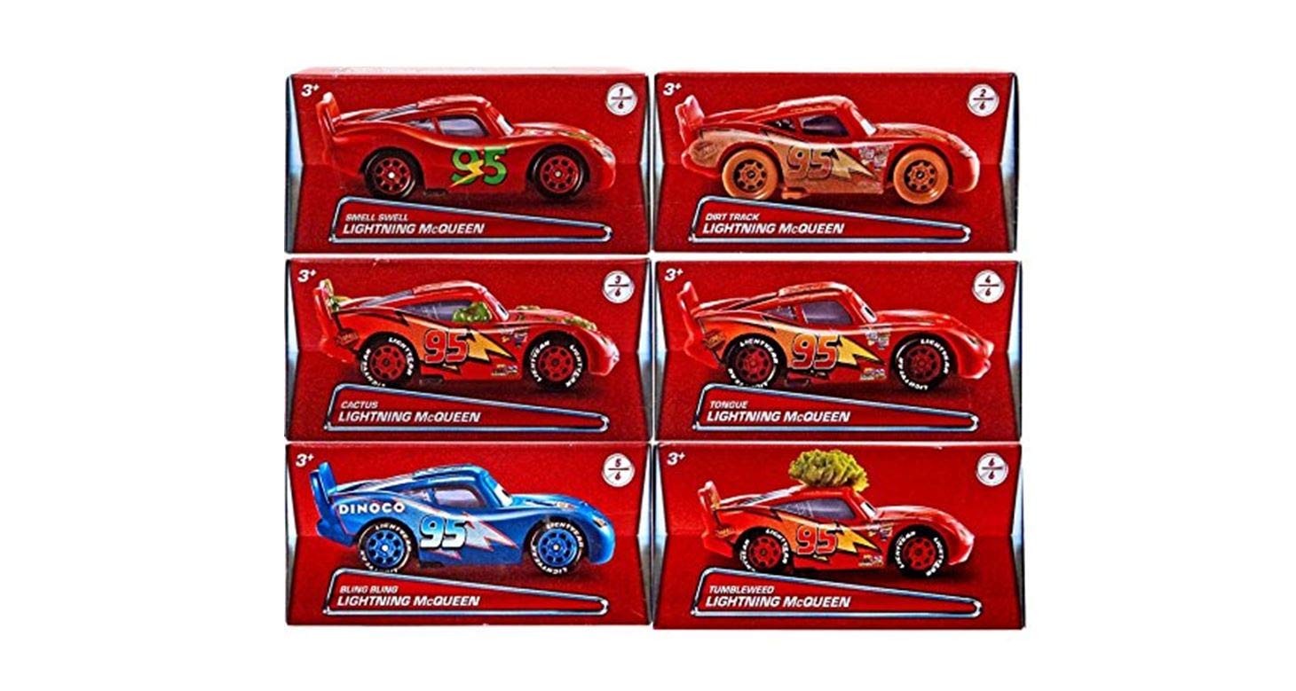 Complete set of 6 brand new Disney Cars Lightning McQueen puzzle-box series diecast cars. Each Lightning McQueen is individually boxed; the boxes fit together to form a sketch-style drawing of Lightning McQueen. 1/6 Smell Swell Lightning McQueen 2/6 Dirt Track Lightning McQueen 3/6 Cactus Lightning McQueen 4/6 Tongue Lightning McQueen 5/6 Bling Bling Lightning McQueen 6/6 Tumbleweed Lightning McQueen Cars are part of the best-selling Mattel series of 1:55 scale diecast characters from the Cars movies.