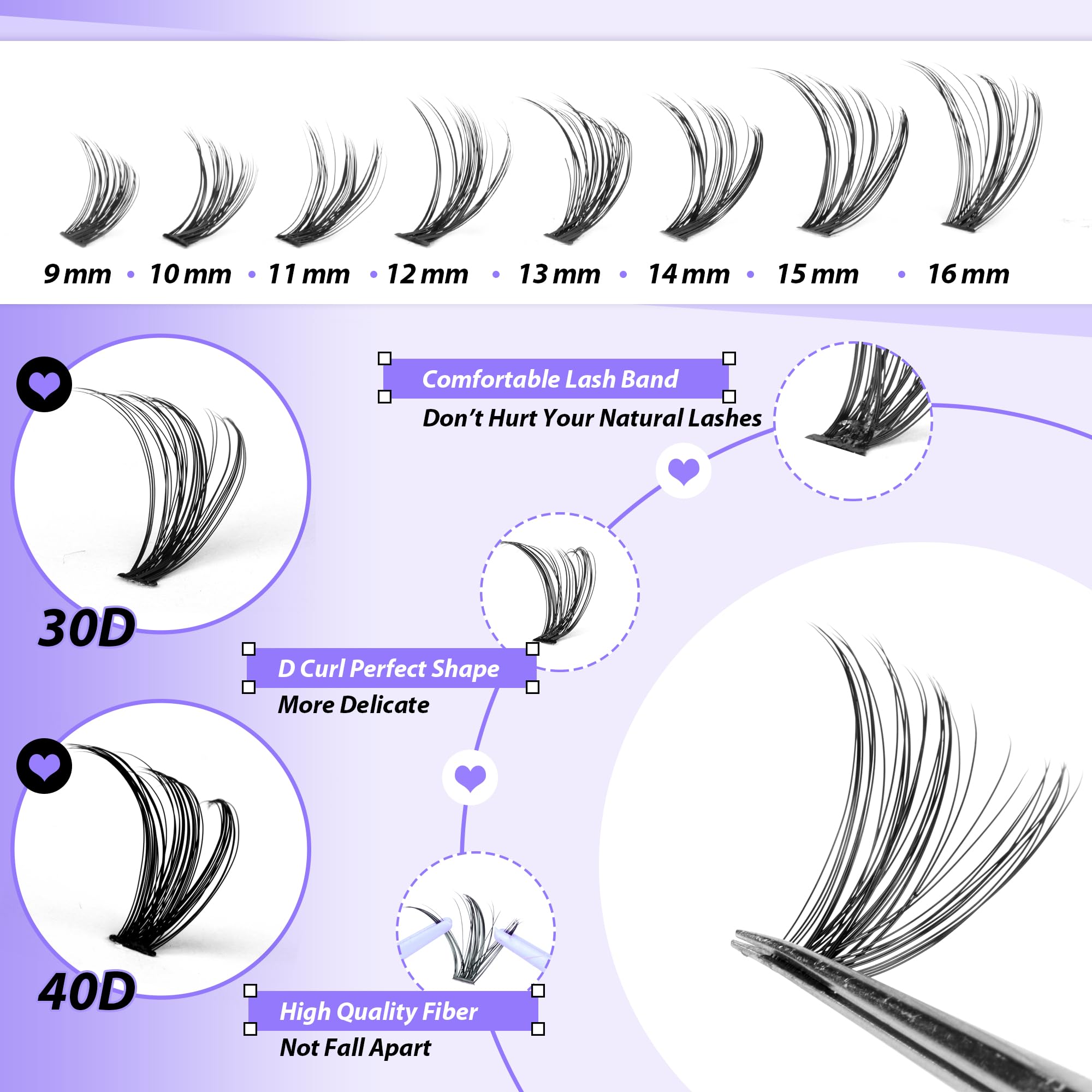 DIY Lash Extension Kit 320Pcs D Curl Lash Clusters Kit with Lash Bond and Remover and Lash Tweezers for Eyelash Extensions Wispy 30D 40D 9-16mm Mix Eyelash Extensions Kit for Beginners by JIMIRE
