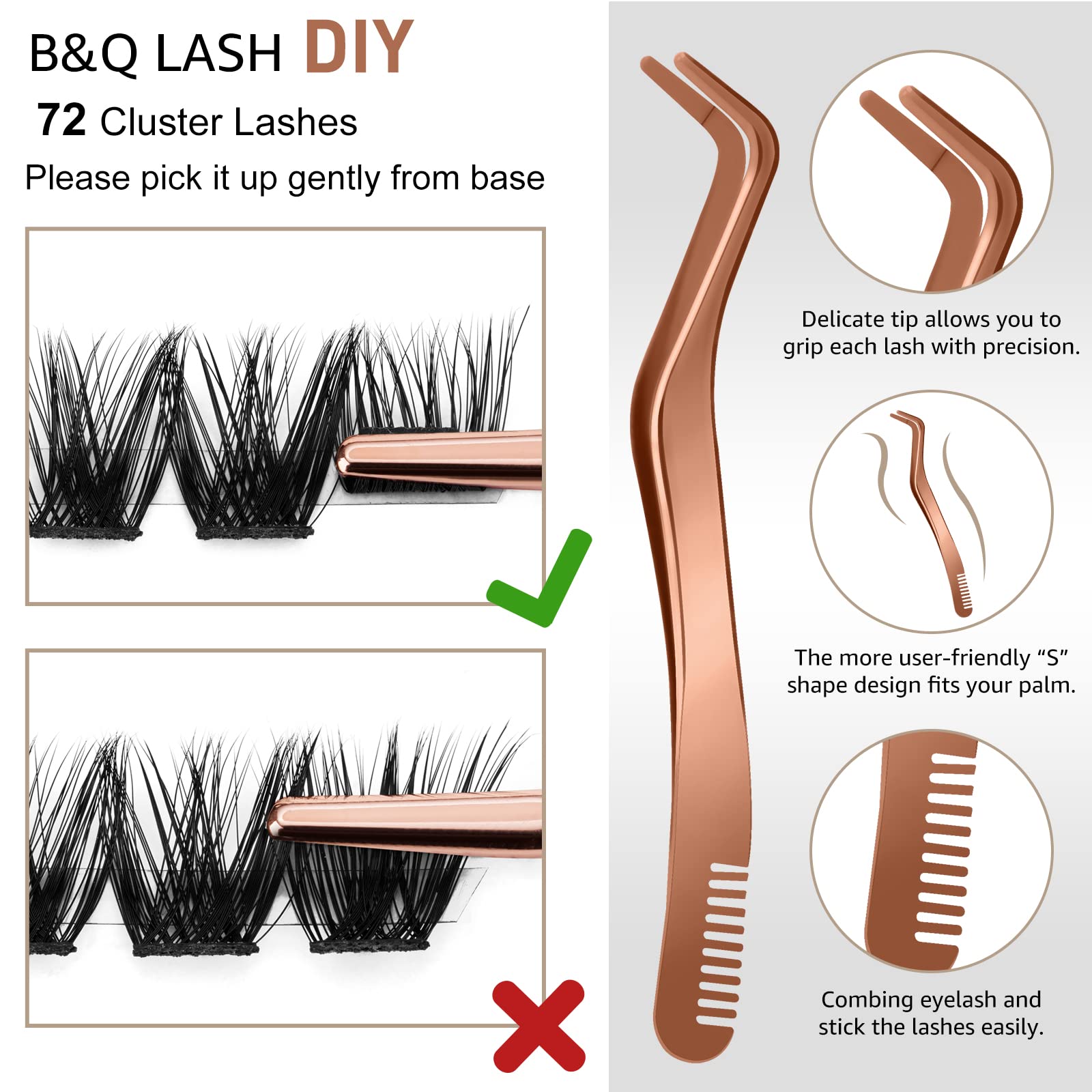 DIY Lash Extension Kit B05 Lash Cluster B&Q DIY Eyelash Extension Kit Individual Lashes Eyelash Clusters with Mascara Brush Eyelash Glue Remover Lash Applicators for DIY Eyelashes Extensions (Kit,B05)