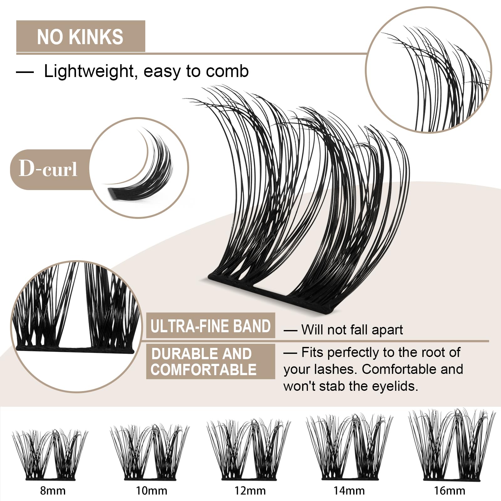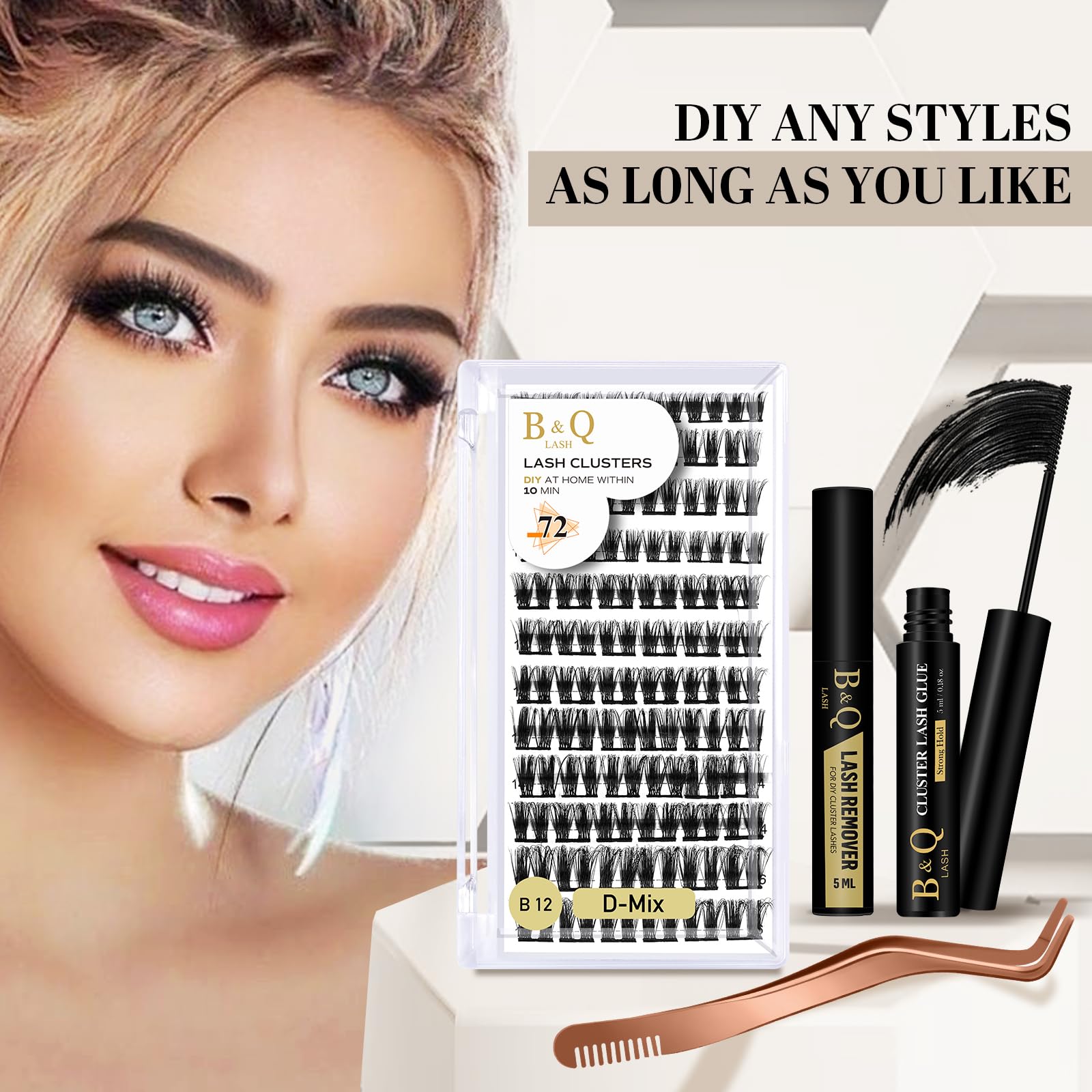 Clusters lashes and Applicators: B&Q Lash chooses the most popular products for lash clusters and makes them in a set. And there are tutorials on the listing and the packaging box, which is very suitable for novices who don’t have eyelash extensions. With dozens of lash styles to choose from, there's always a style that's right for you.