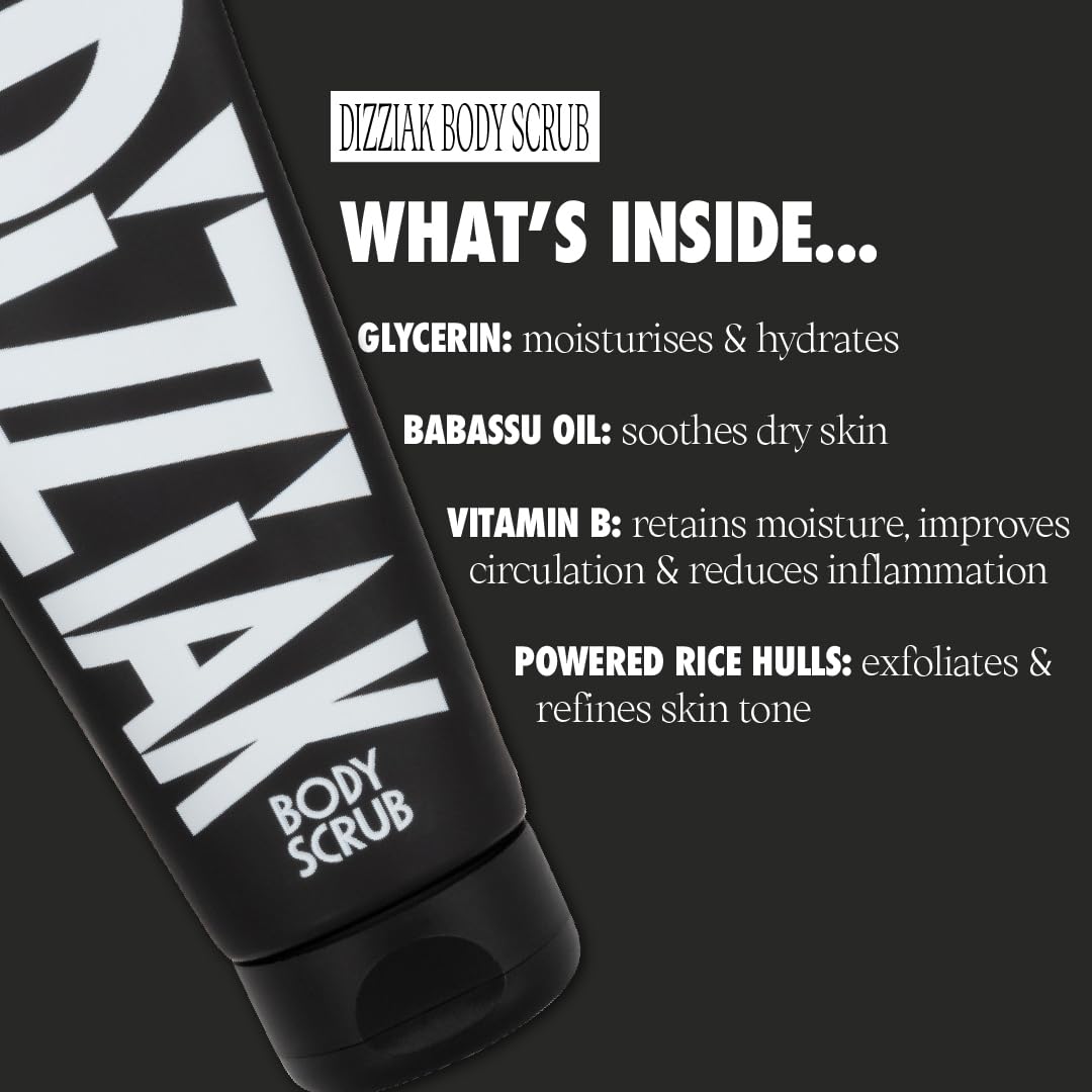 A rich, deep cleaning body exfoliator laced with powdered rice hulls to gently polish away dead cells for instantly smoother, brighter skin. But that’s not it.The grains are submerged in a blend of DIZZIAK’s favourite natural hydrators (think Babassu oil and Glycerin). Plus, sugar beet and coconut extracts to lock in moisture (and an invigorating scent) long after you’ve left the shower. It’s the perfect pregame to DIZZIAK Body Conditioner. No parabens. No sulphates. No silicones. No mineral oil. No cruelty. Vegan
