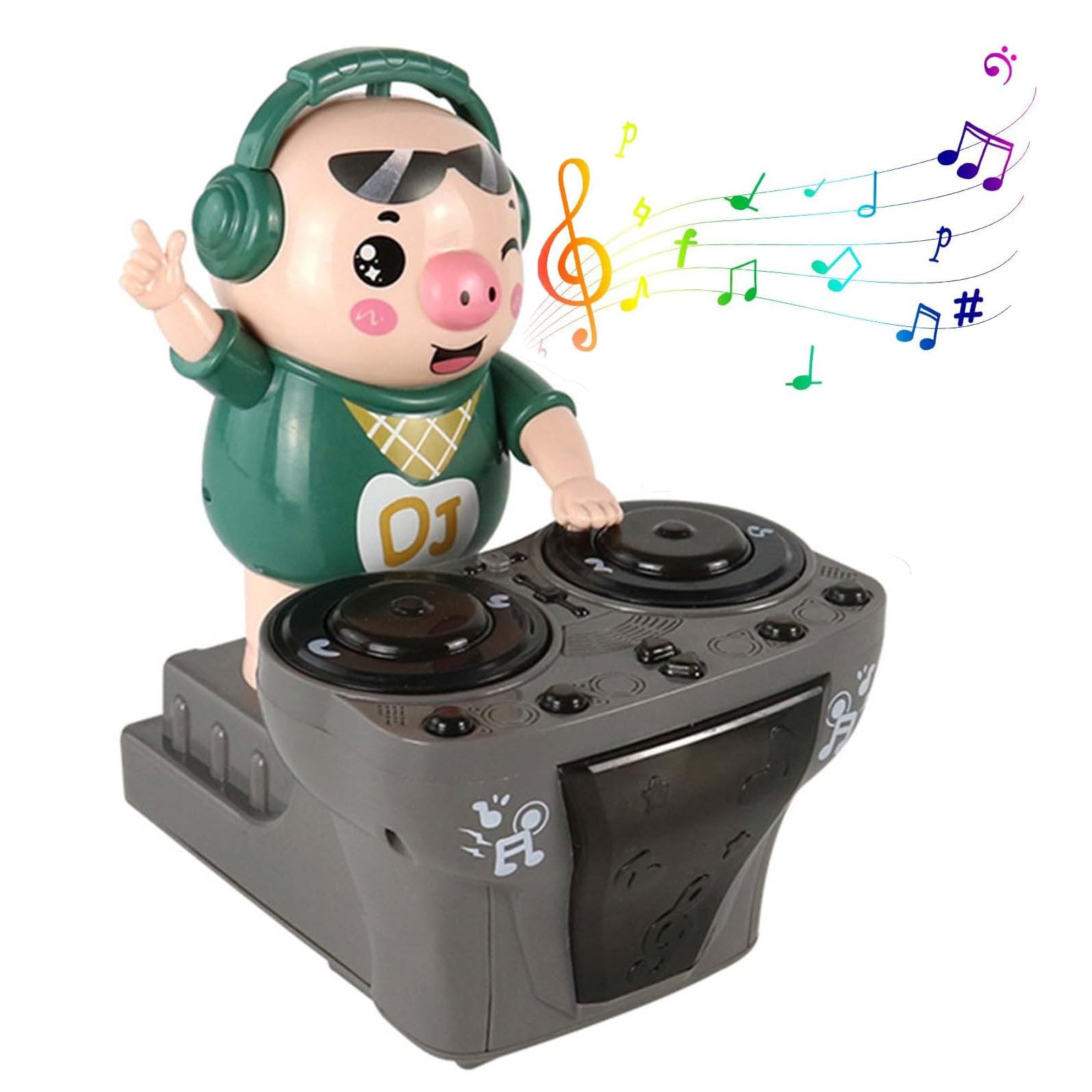 DJ Swinging Piggy Toy, DJ Light Music Dancing Pig Toy, DJ Light Music Dancing Pig Toy, Funny Cute Swing Dancing Piggy Toy with Music and LED Lights for Kids (With battery-A)