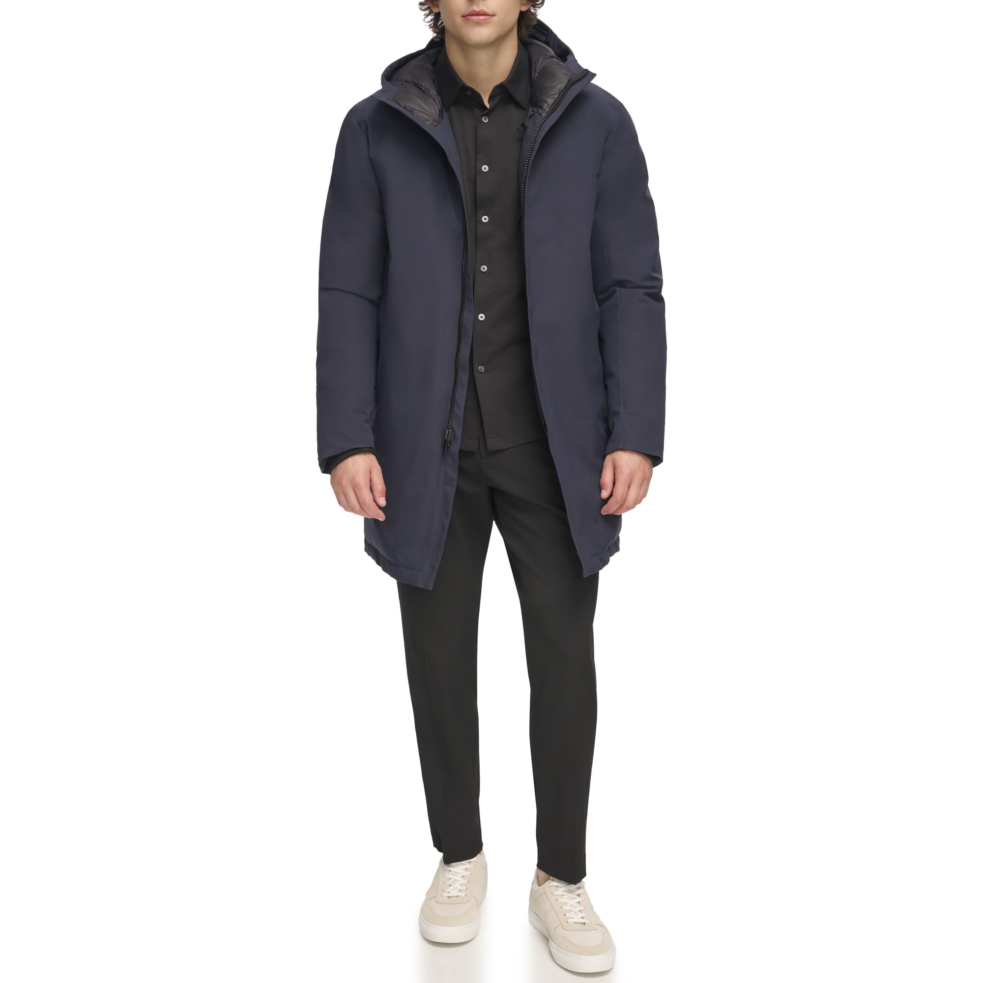 DKNY Men's Water Resistant Hooded Logo Parka Jacket, Navy Stretch