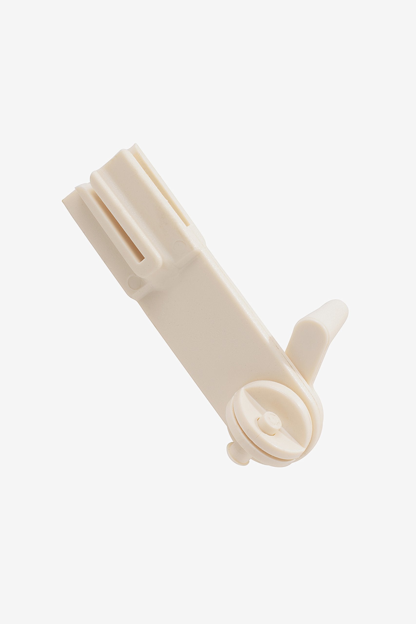 A plastic winder that can be used to wind floss ribbon thread or yarn onto cardboard or plastic bobbins for easy storage. Ideal for storage and organization.