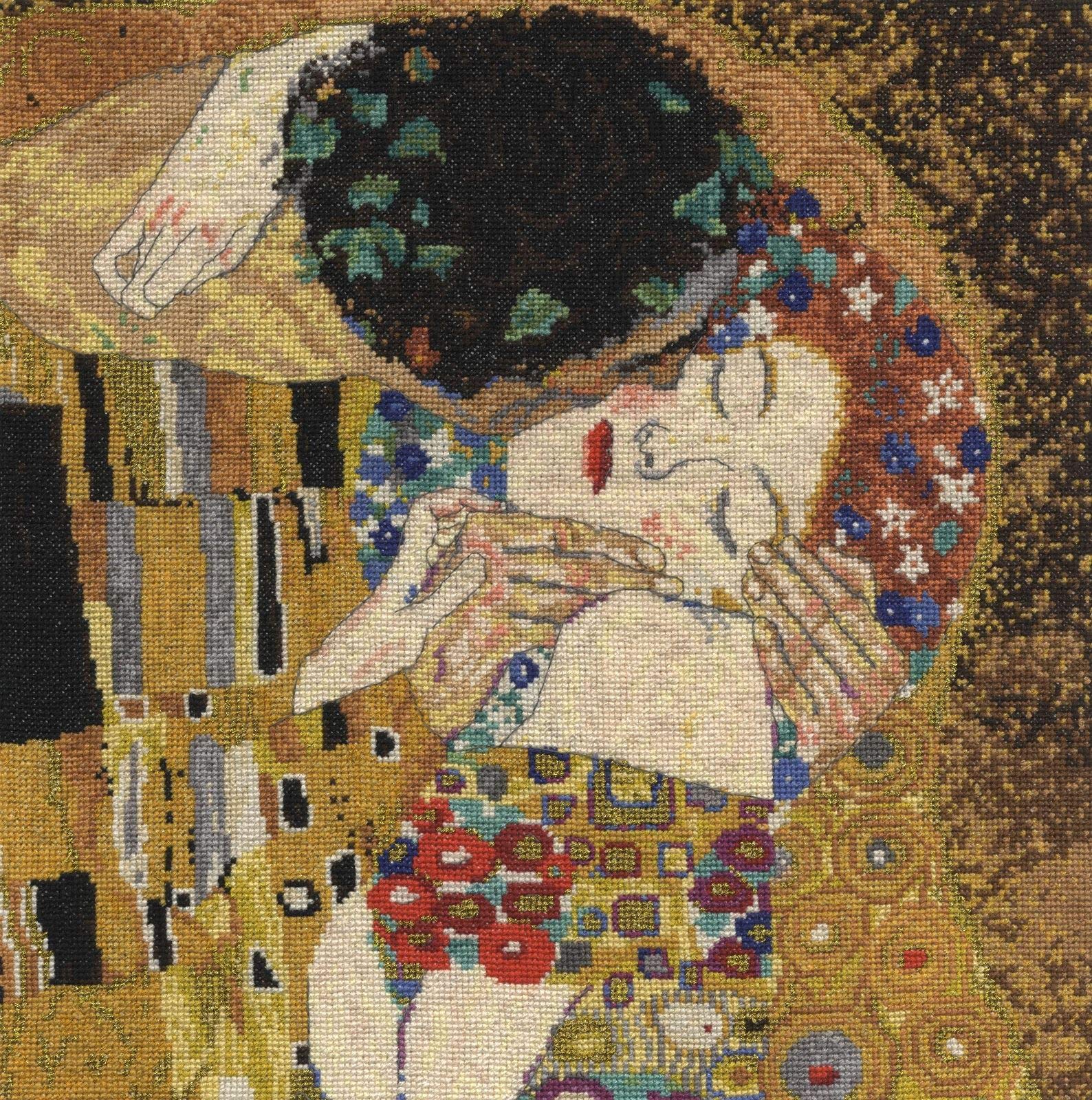 Cross-stitch kit "The Kiss" a masterpiece of modern art by Gustav Klimt (July 14, 1862 - February 6, 1918) an internationally known Austrian painter. This complete kit is for experienced embroiderers.