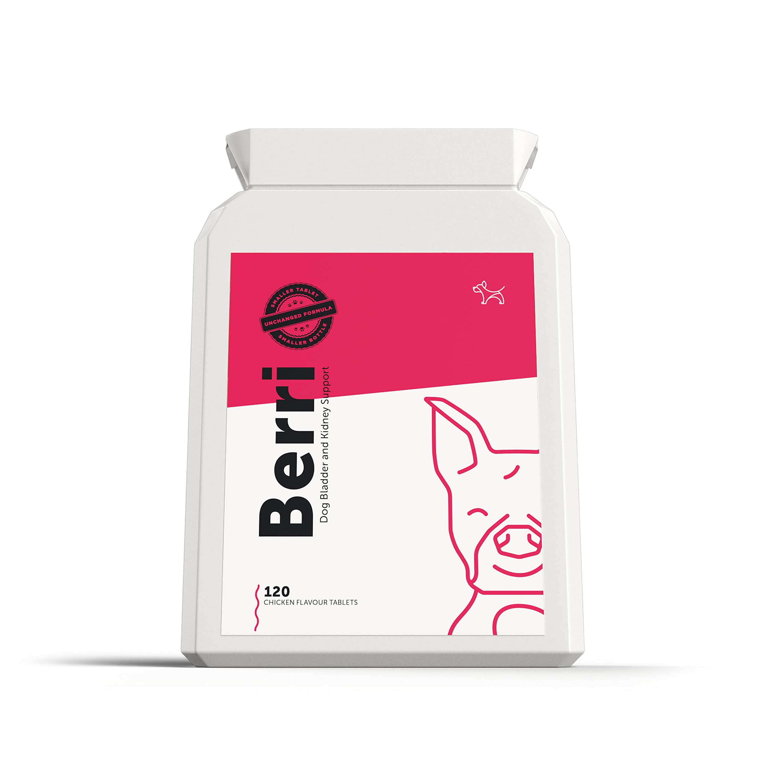 Have you recently had your four-legged best friend suffer from uncontrolled ‘accidents’? Is your dog urinating blood, needs to go outside several times a day and experiences pain? These may be signs of urinary tract infection, known as UTI! Recurring symptoms such as blood in urine, frequent urination or crying out while urinating can mean that your pup is feeling pain but may be too afraid to show it to you. BERRI UTI tablets for dogs can help to support the urinary tract. It's a perfect kidney and bladder supplement. You may not know that there is something wrong with your dog until you see blood in the urine or your well-behaved friend breaking the housetraining uncontrollably. BERRI cranberry supplement for dogs helps to aid urinary tract infections. After a while, your dog will forget the pain and the discomfort! BERRI urinary tract support for dogs tablets contain 100% natural food ingredients and a formulated blend of cranberry powder, marshmallow root, D-mannose, liquorice, astragalus root, and nettle seed. Manufactured in the UK, BERRI cranberry tablets come in a tasty chicken flavour in a slim container that fits through your letterbox and is easy to store. It's heartbreaking to see your favourite pet hurting, so help your friend with straining to urinate, breaking housetraining, dribbling urine, and blood in the urine by giving him BERRI cranberry supplement for dogs.